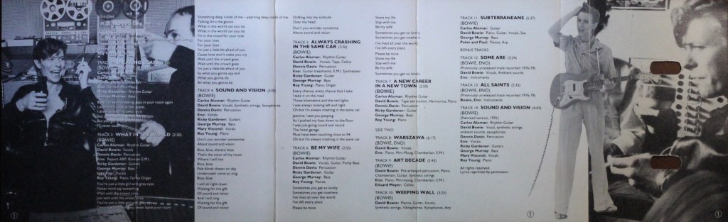 The track sequence has been slightly adjusted from the LP format so that the bonus tracks ‘Some Are’, ‘All Saints’ and a Sound And Vision remix have been added to the end of Side 2.