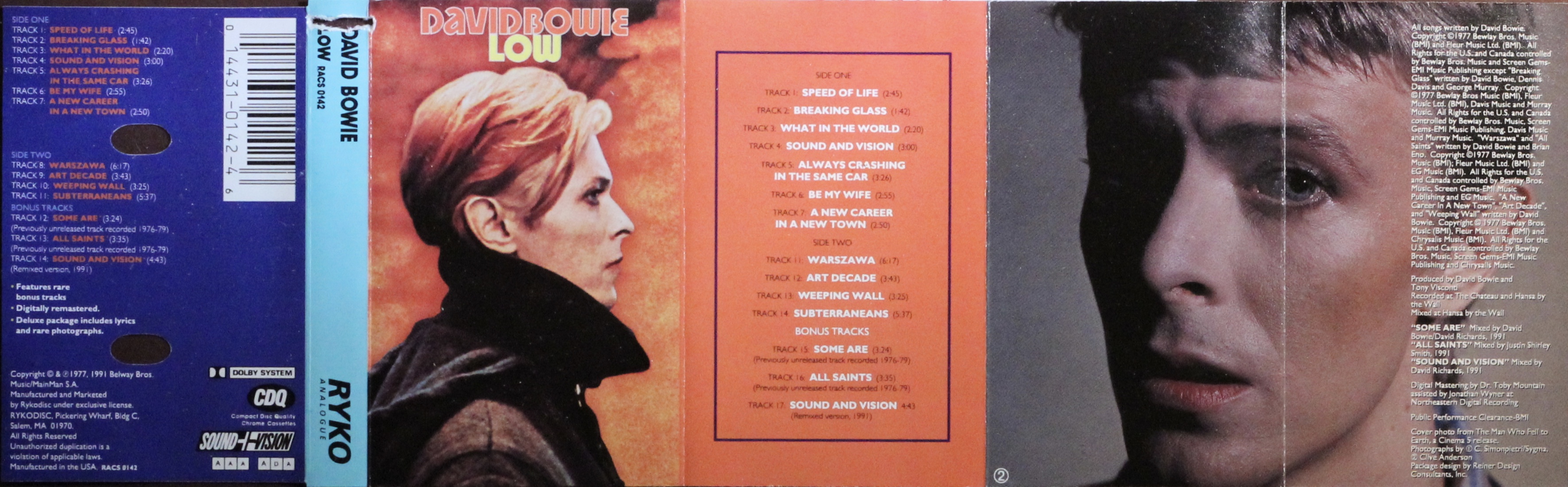 The track sequence has been slightly adjusted from the LP format so that the bonus tracks ‘Some Are’, ‘All Saints’ and a Sound And Vision remix have been added to the end of Side 2.