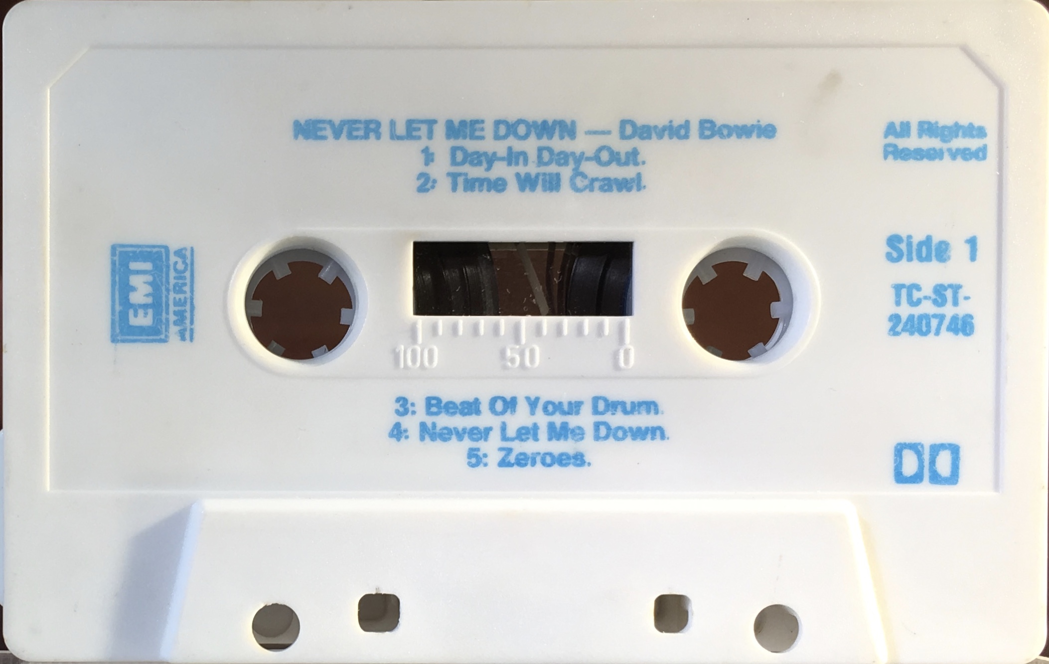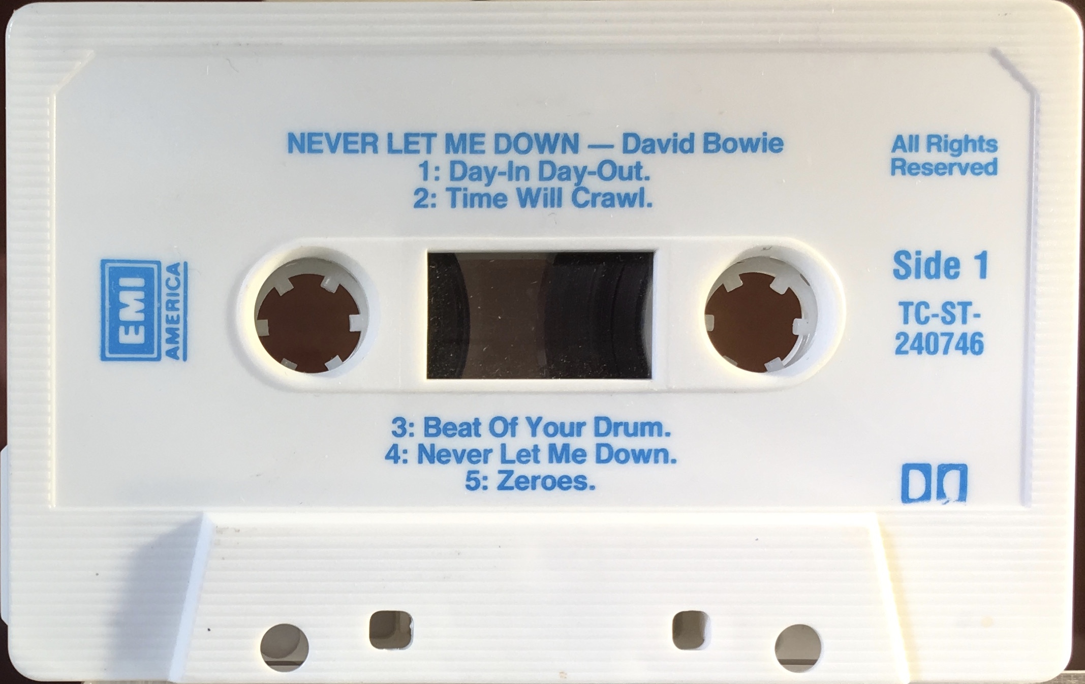 Side 1: Day-In Day-Out; Time Will Crawl; Beat Of Your Drum; Never Let Me Down; Zeroes.
