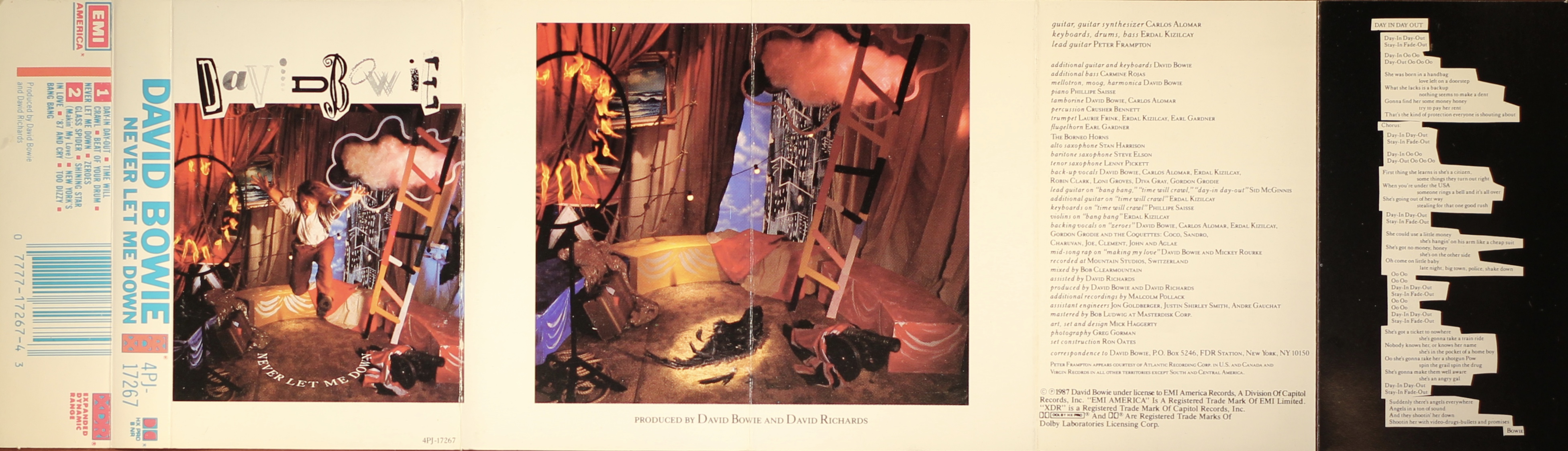 Side 2: Glass Spider; Shining Star (Makin’ My Love); New York’s In Love; ’87 And Cry; Too Dizzy; Bang Bang.