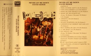 Side 2: Glass Spider; Shining Star (Makin’ My Love); New York’s In Love; ’87 And Cry; Too Dizzy; Bang Bang.