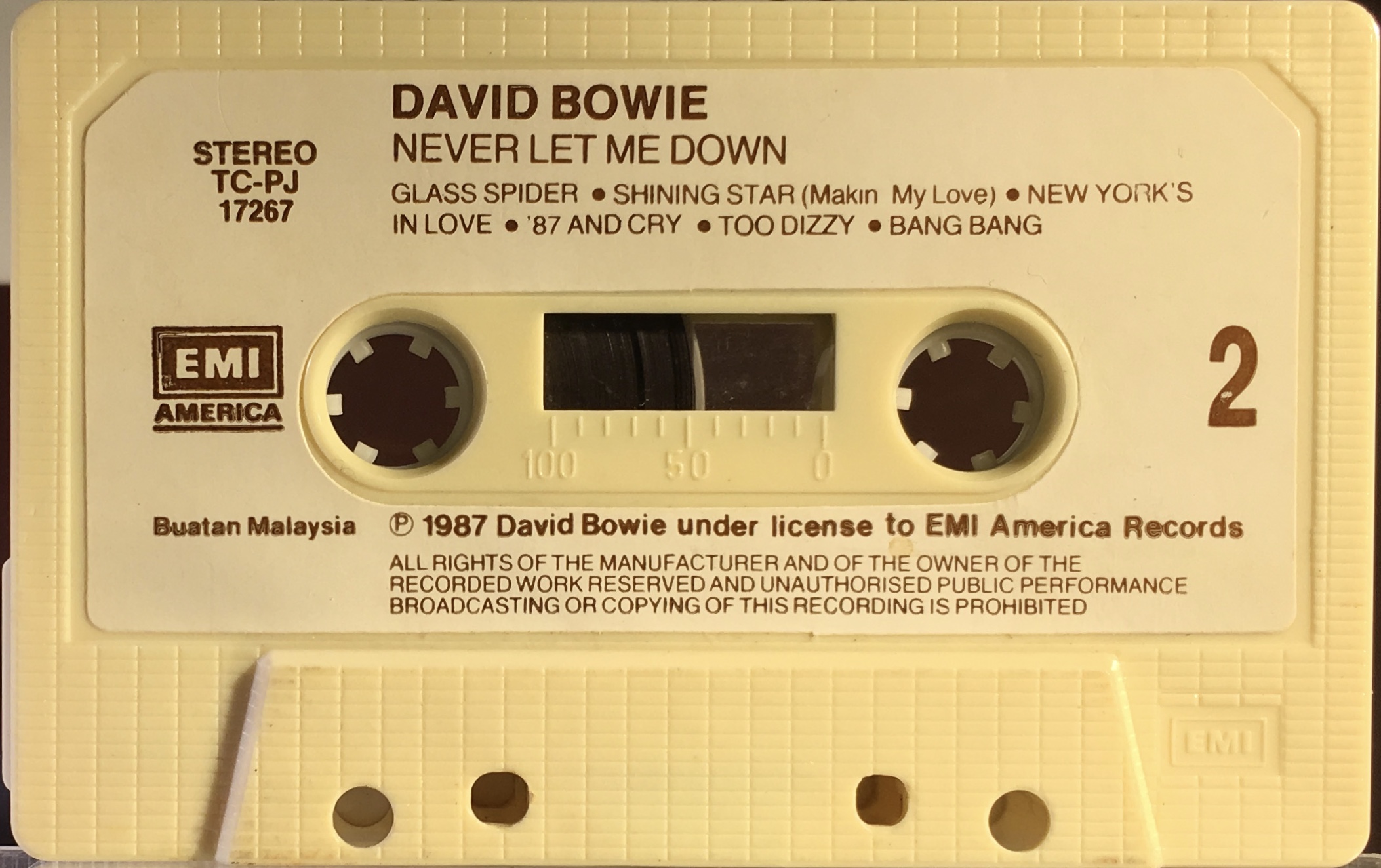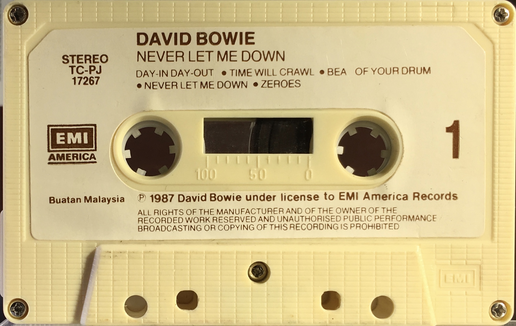 Never Let Me Down: Malaysia; EMI America, TC-PJ 17267; 1987.