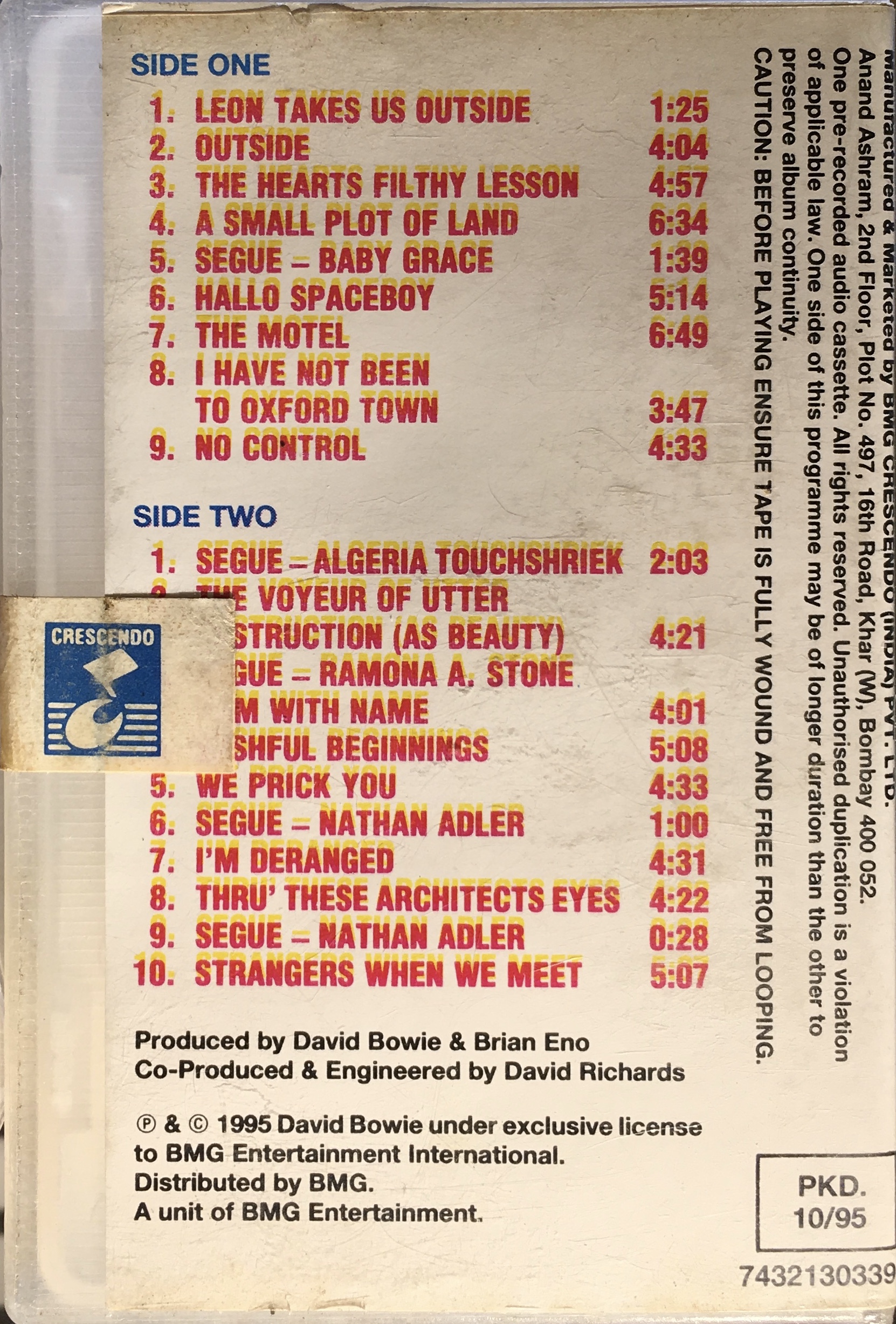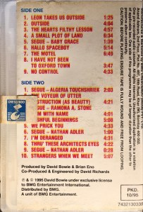 Side 1: Leon Takes Us Outside; Outside; The Heart’s Filthy Lesson; A Small Plot Of Land; Segue – Baby Grace (a horrid cassette); Hallo Spaceboy; The Motel; I Have Not Been To Oxford Town; No Control.