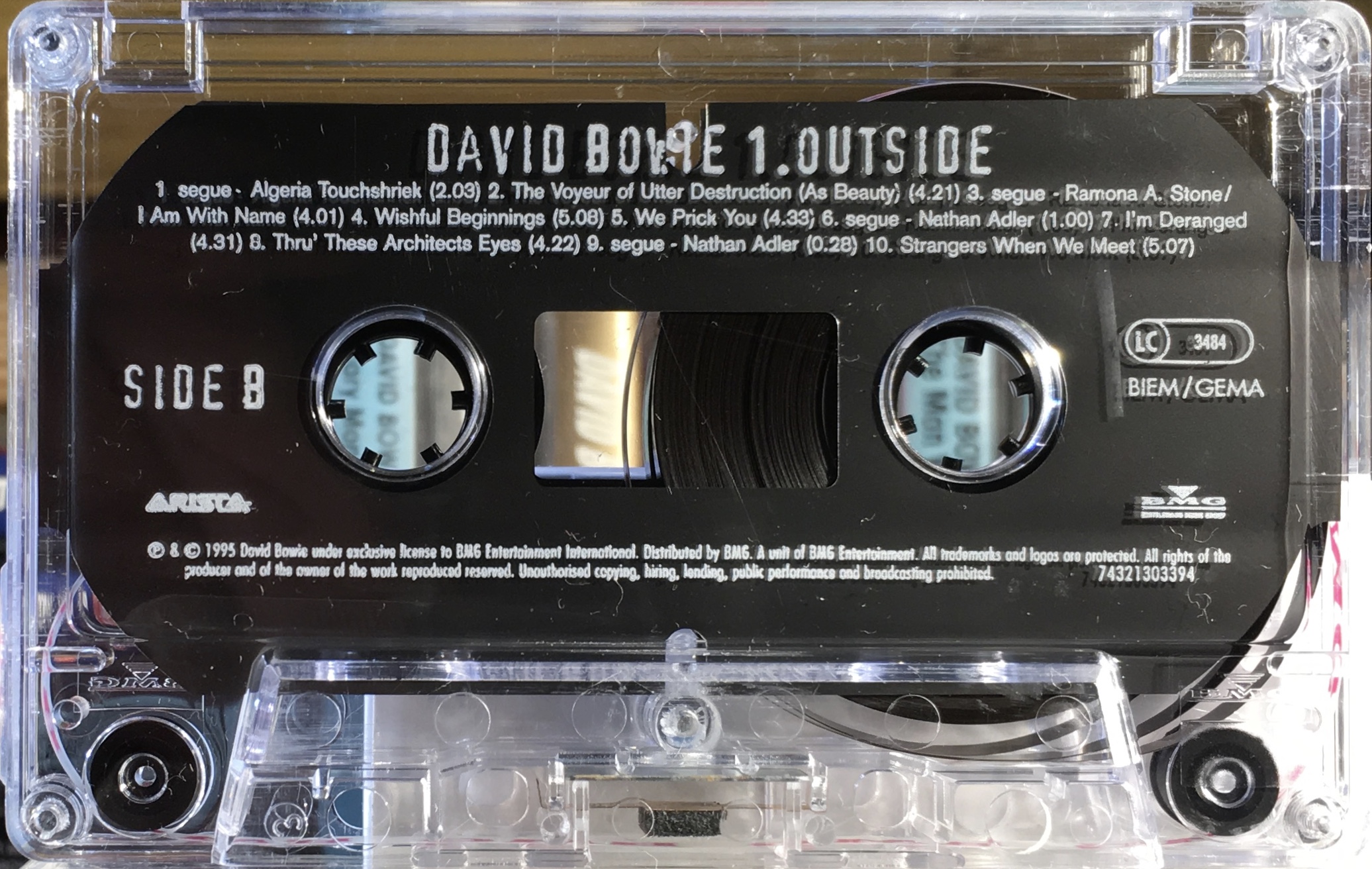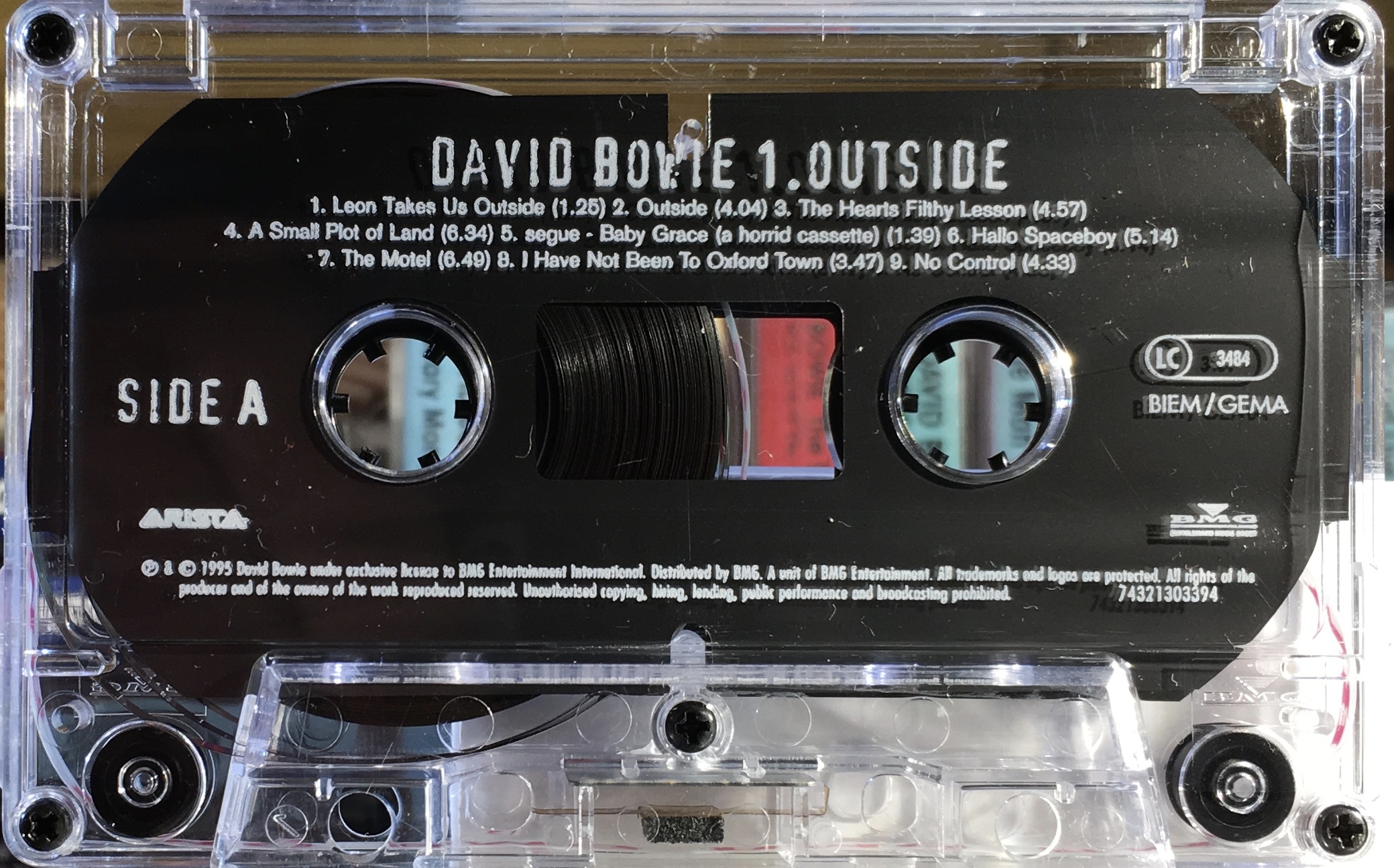 Side 1: Leon Takes Us Outside; Outside; The Heart’s Filthy Lesson; A Small Plot Of Land; Segue – Baby Grace (a horrid cassette); Hallo Spaceboy; The Motel; I Have Not Been To Oxford Town; No Control.