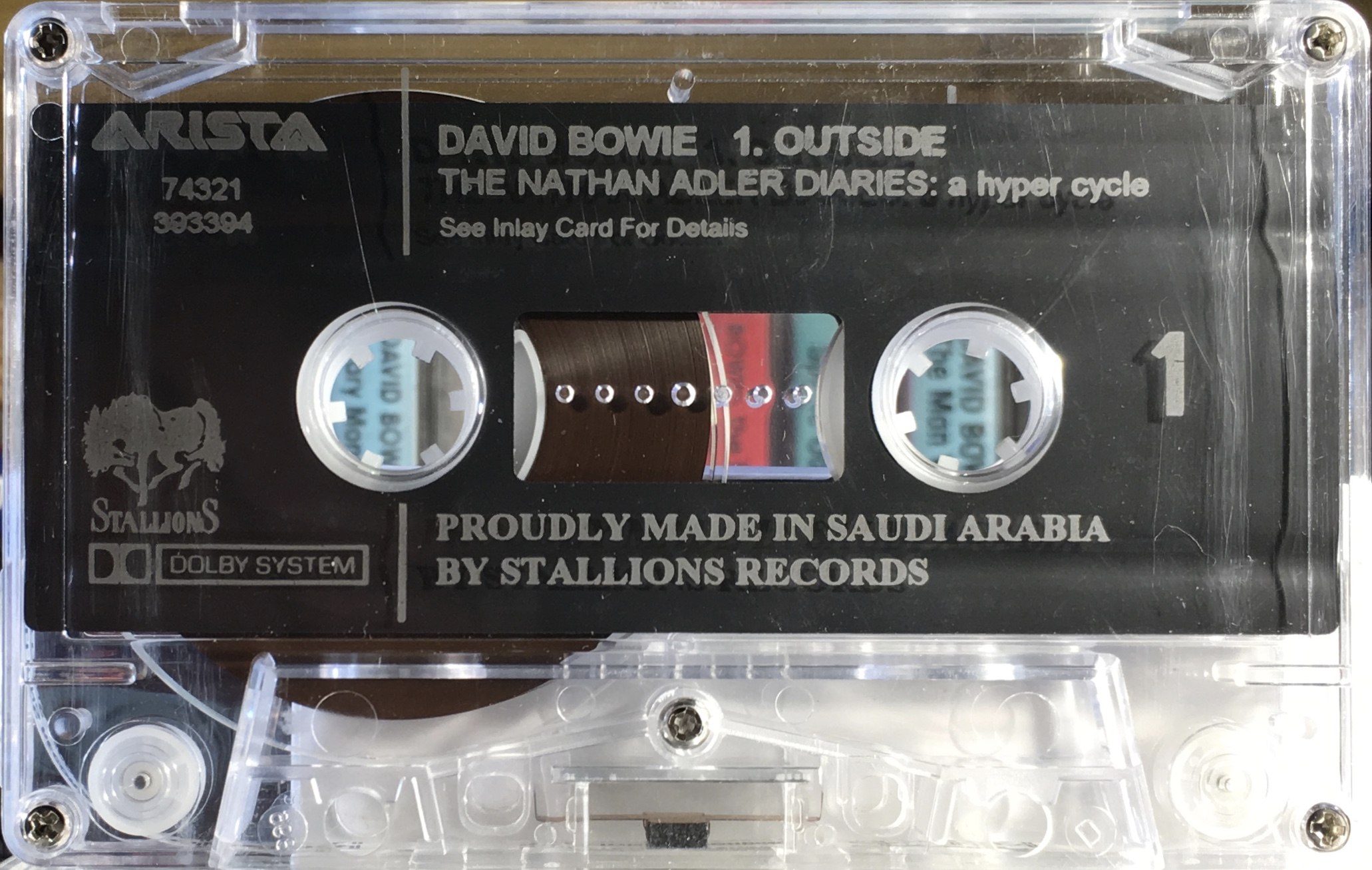 White ink printed directly to transparent shell with plain slip sheet. BMG/ Arista/ Savage and Stallions logo appear. “Proudly made in Saudi Arabia by Stallions Records’ on shell.