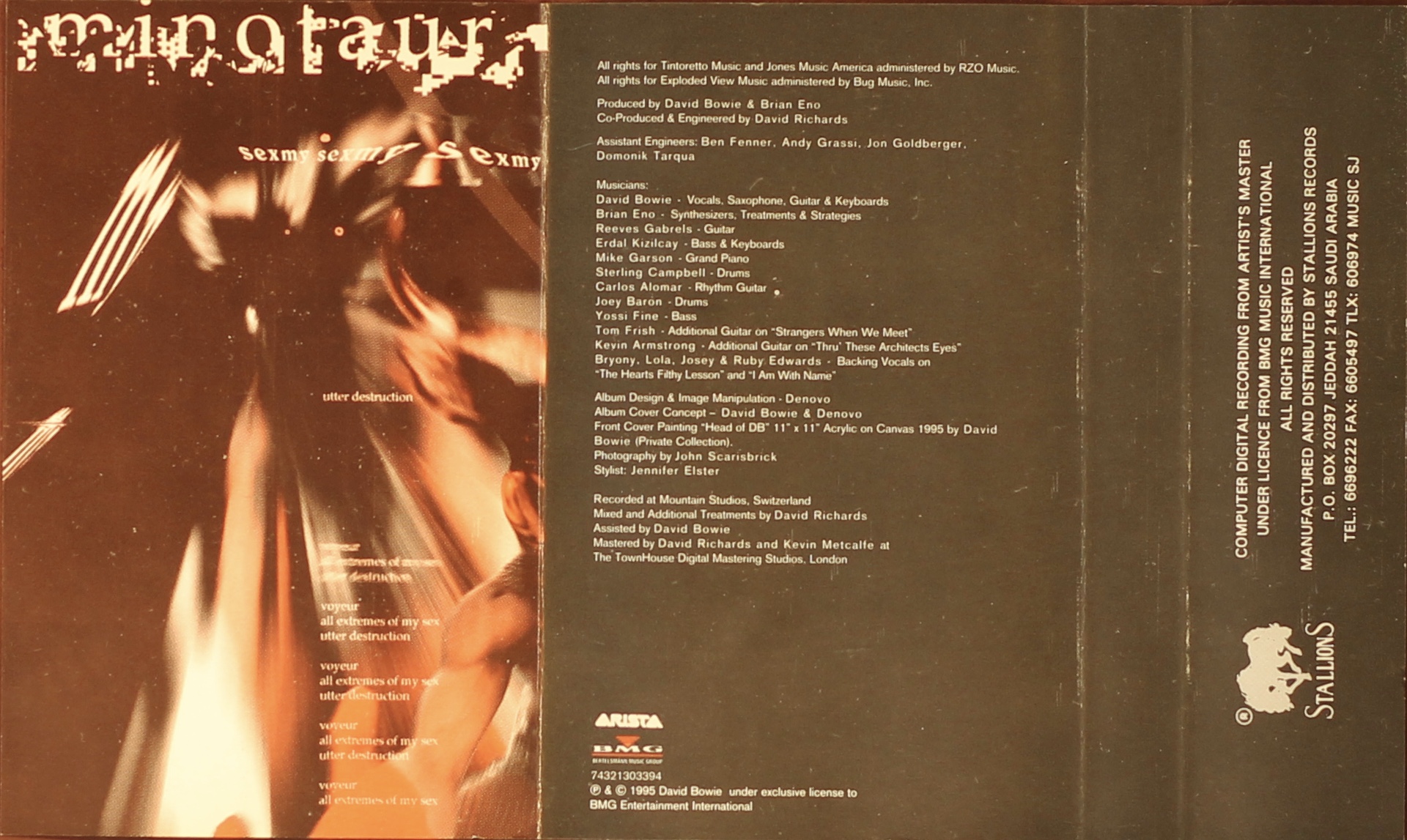 Side 1: Leon Takes Us Outside; Outside; The Heart’s Filthy Lesson; A Small Plot Of Land; Segue – Baby Grace (a horrid cassette); Hallo Spaceboy; The Motel; I Have Not Been To Oxford Town; No Control.