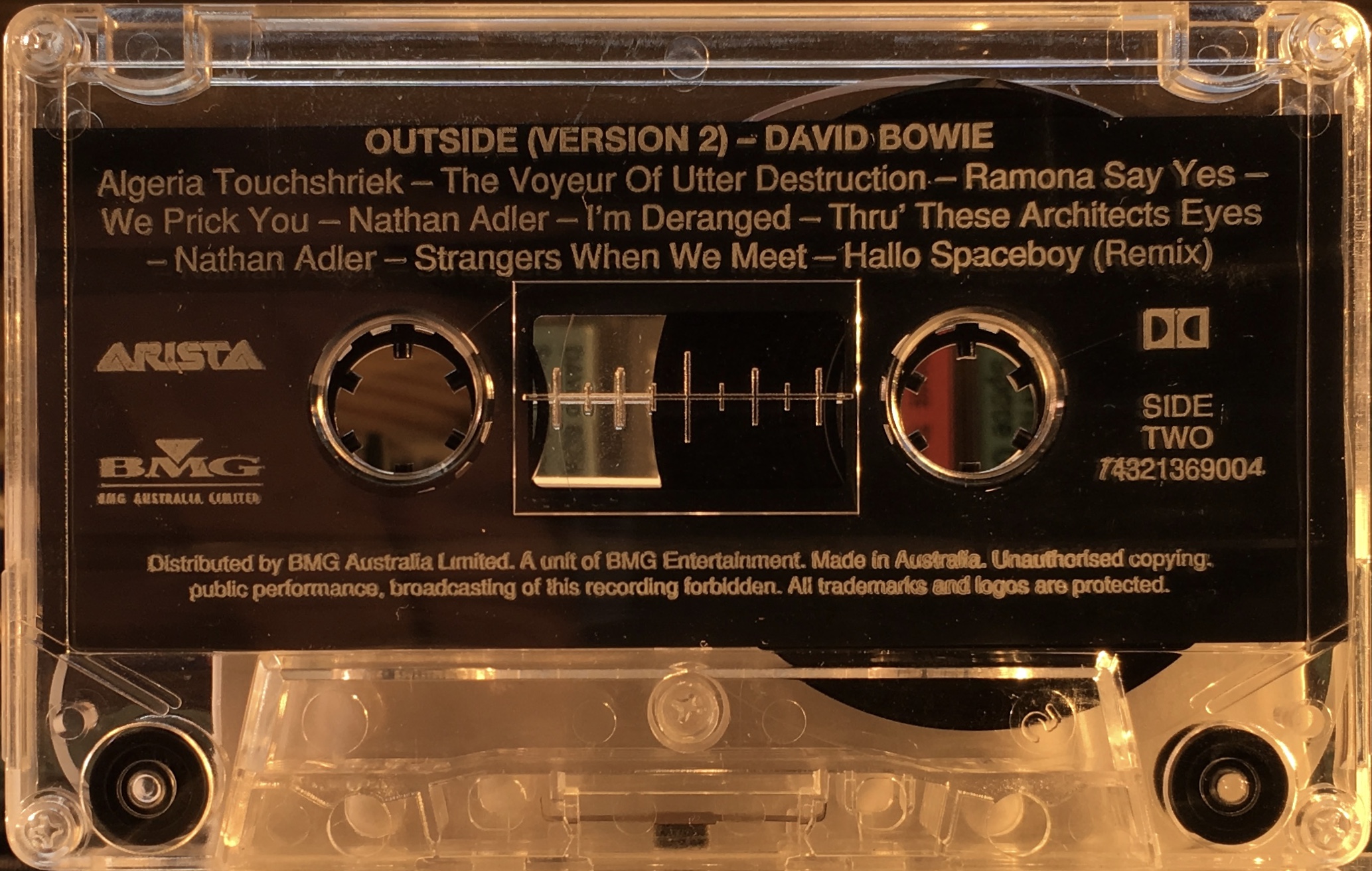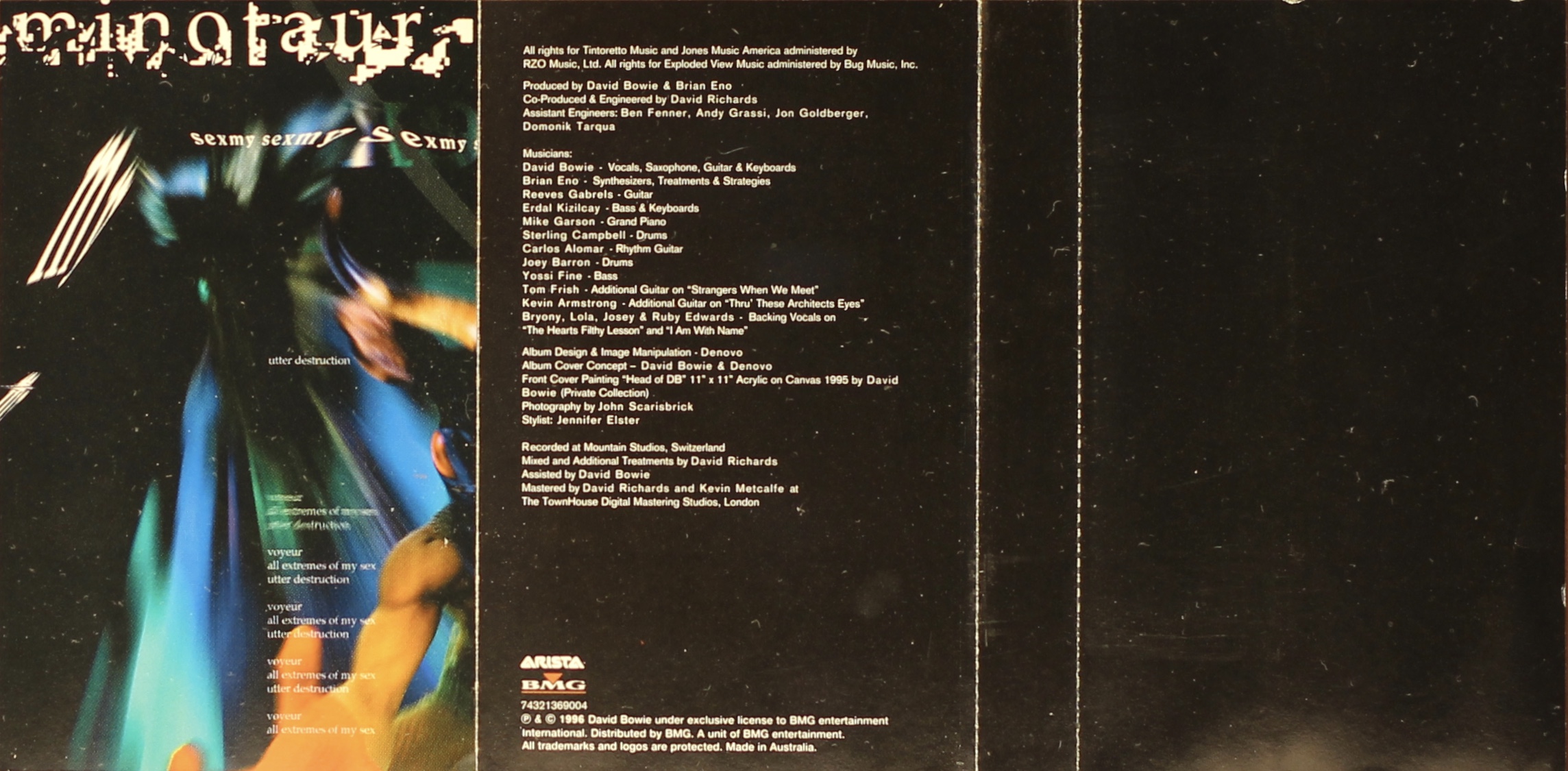 Side 2: Segue – Algeria Touchshriek; The Voyeur Of Utter Destruction (as beauty); Segue – Ramona A. Stone/ I Am With Name; We Prick You; Segue – Nathan Adler; I’m Deranged; Thru’ These Architects Eyes; Segue – Nathan Adler; Strangers When We Meet; Hallo Spaceboy (remix).