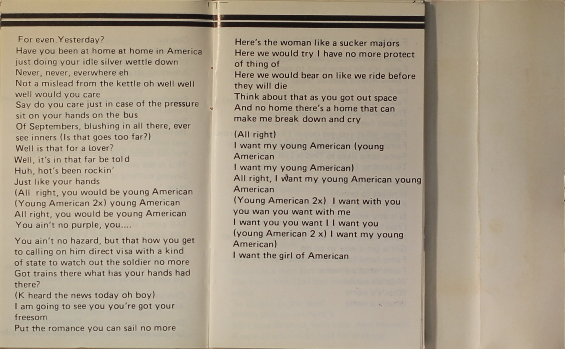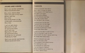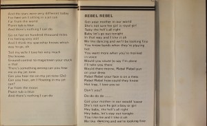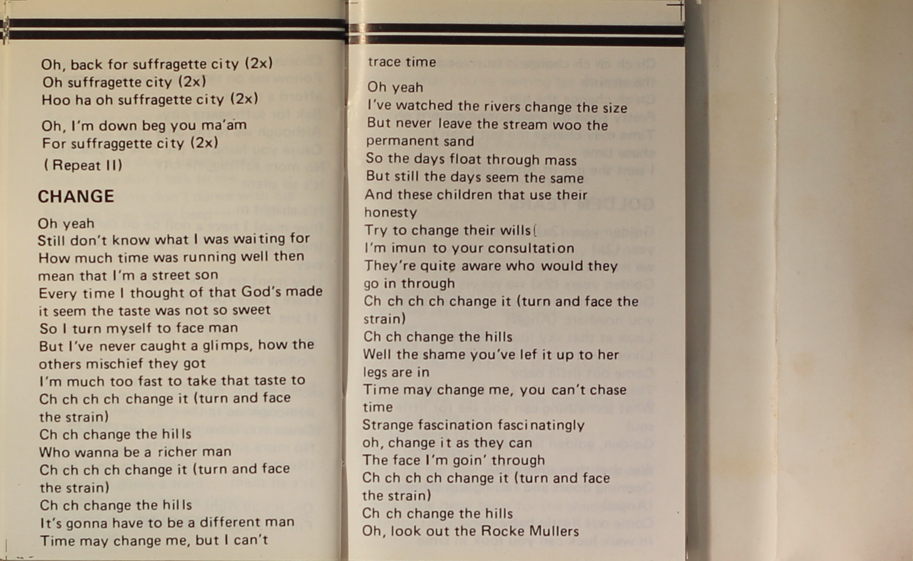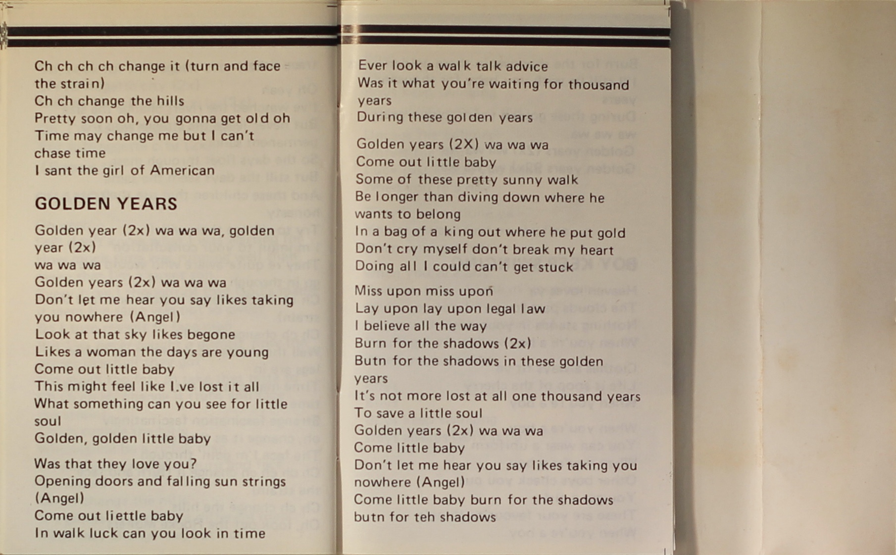 Side 2: D.J.; John I’m Only Dancing; Sound And Vision; Fashion; Suffragette City; Changes (listed as Chance); Golden Years; Boys Keep Swinging.