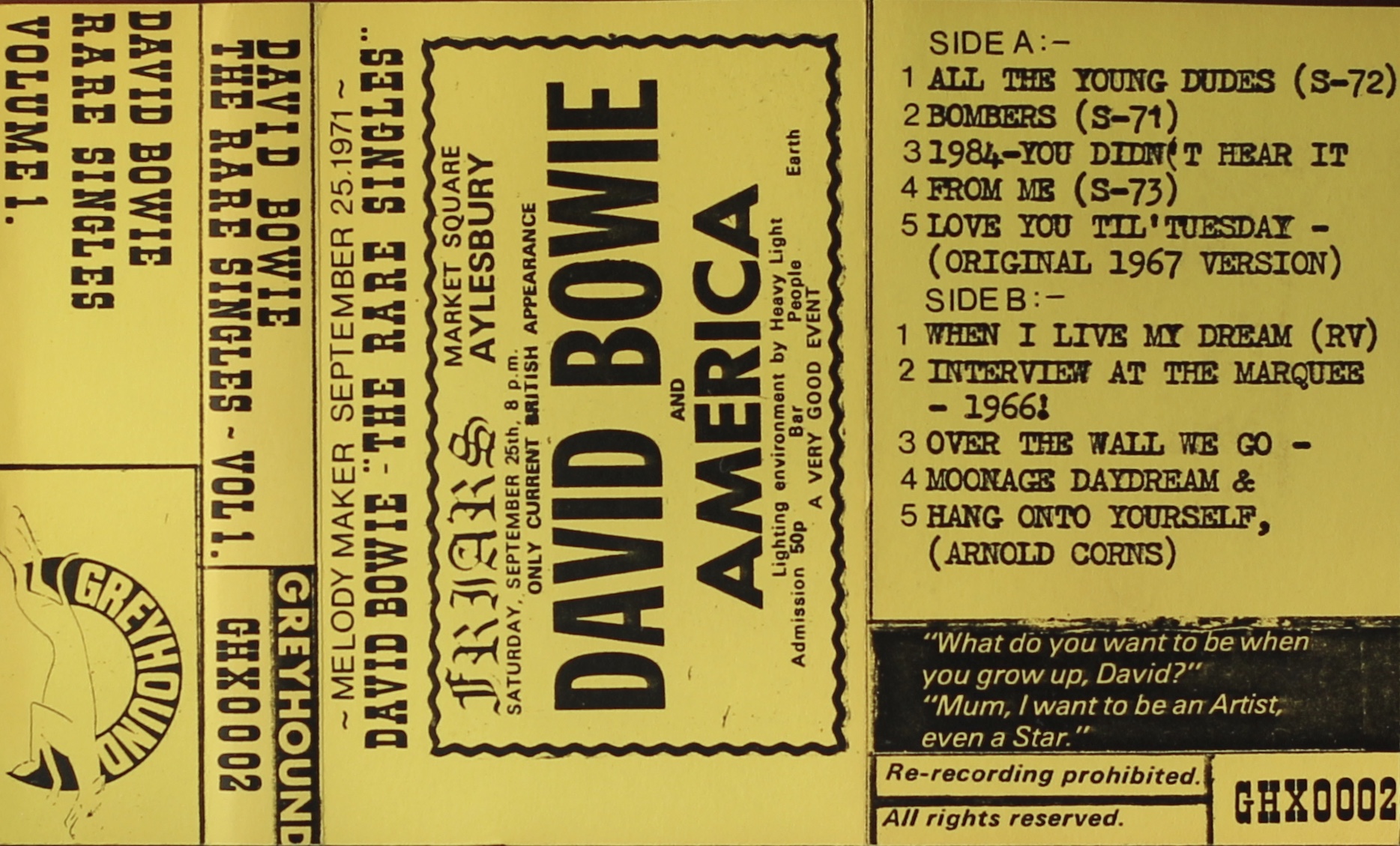 Side 2: When I Live My Dream; Interview At The Marquee (1966); Over The Wall We Go; Moonage Daydream (Arnold Corns); Hang Onto Yourself (Arnold Corns).