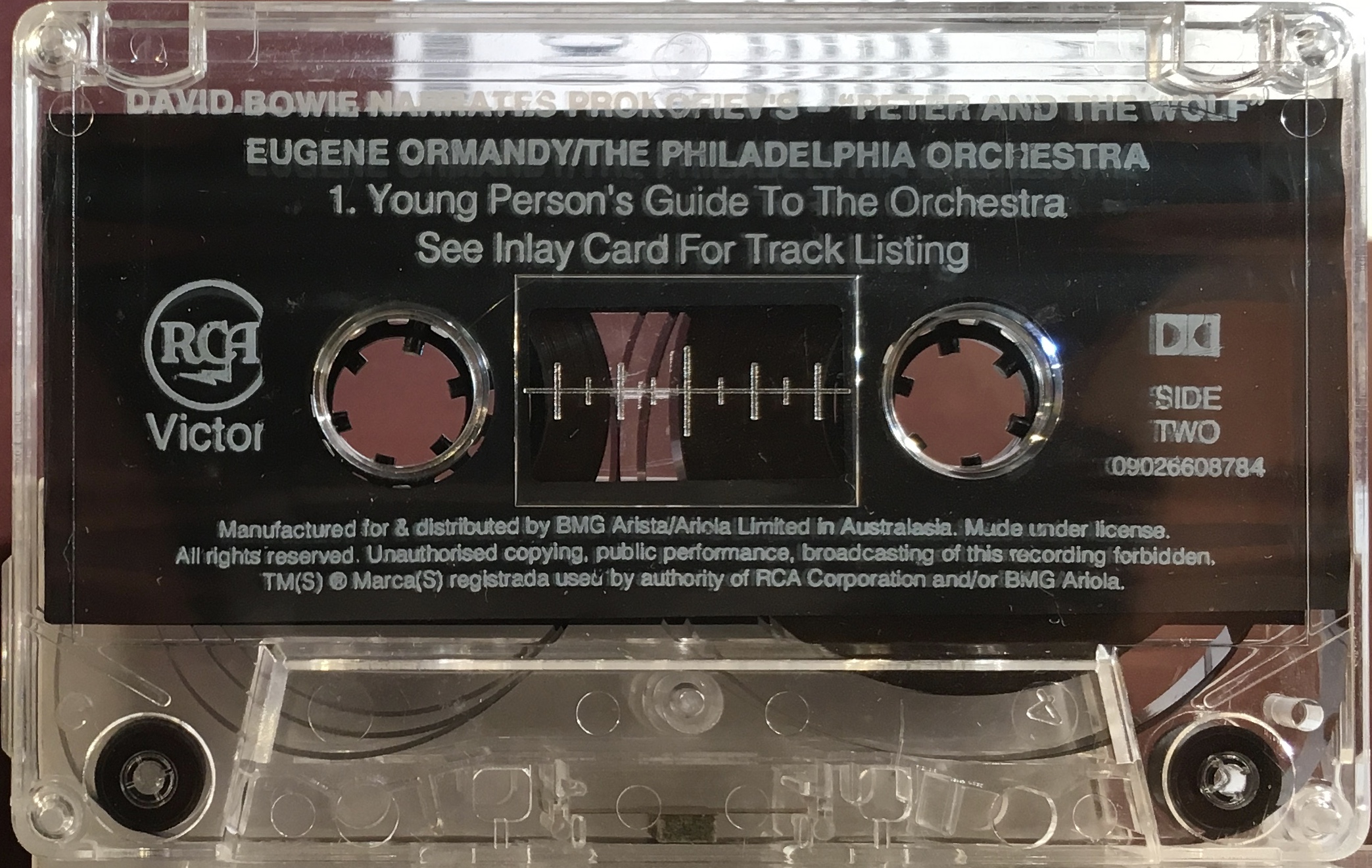 ‘Peter & The Wolf (David Bowie, narr.) Young Person’s Guide To The Orchestra, The Nutcracker Suite. Eugene Ormandy/ The Philadelphia Orchestra’..