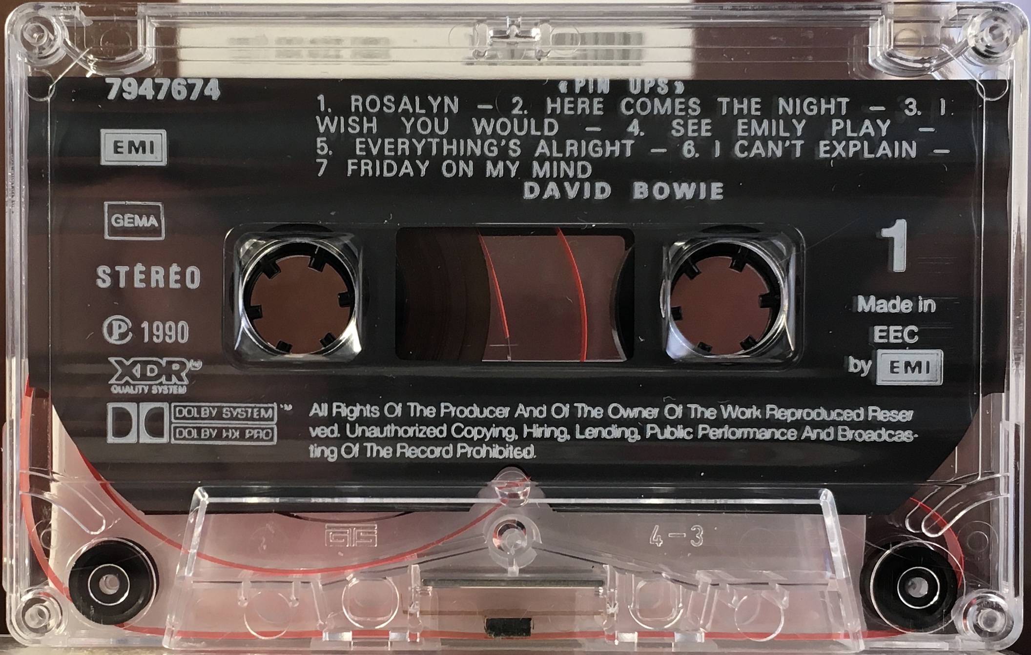 Although made in France (264 prefix on catalogue number), the cassette is intended for Europe wide distribution. Titles in English; information in English. The mechanical rights are credited to GEMA (Germany) and states Made In EEC. Stereo is the only word in French on either side. The cover information is in English and marked EMI France.