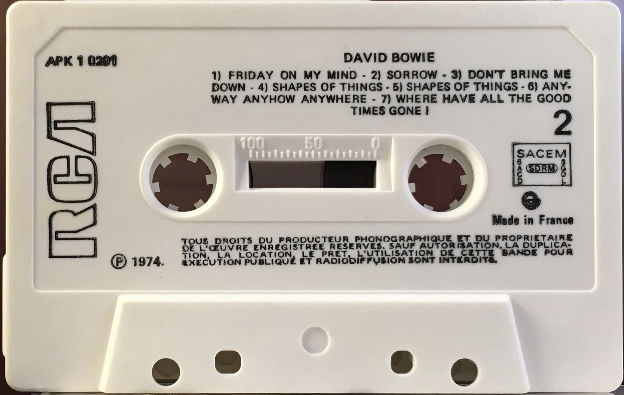 Titles are in English. The copyright information on both sides is in French, the cassette is stamped ‘Made In France’.