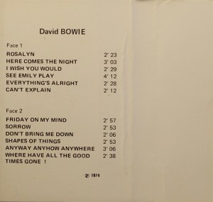 Side 1: Rosalyn; Here Comes The Night; I Wish You Would; See Emily Play; Everything’s Alright; I Can’t Explain.