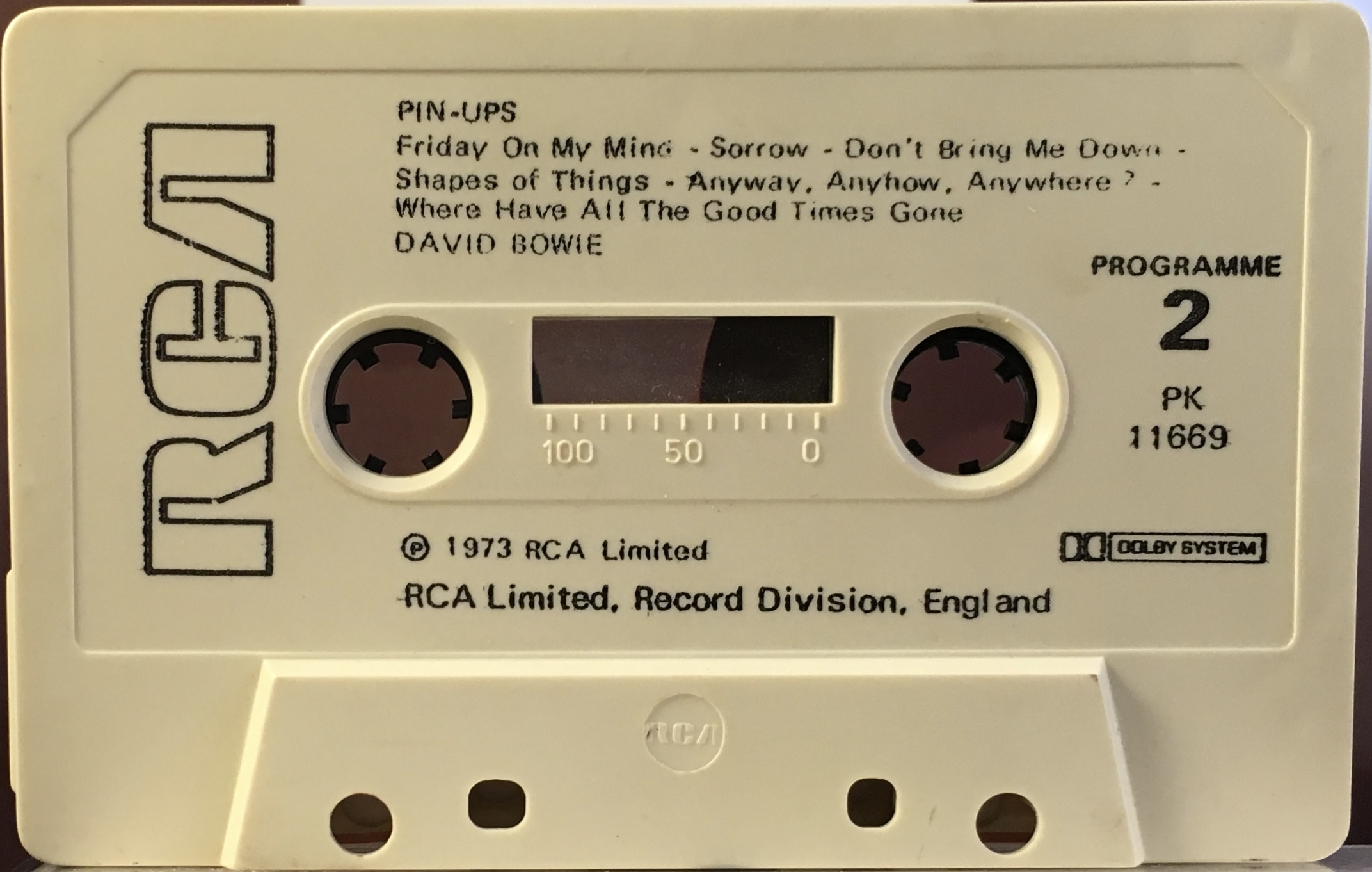 Some shells have the RCA stamp on them lower centre, other have ‘Made In USA’ stamped into them top right – these tapes are sometimes mistakenly sold as USA issues. All the printing, copying and assembly was performed in the UK using a USA made RCA shell.