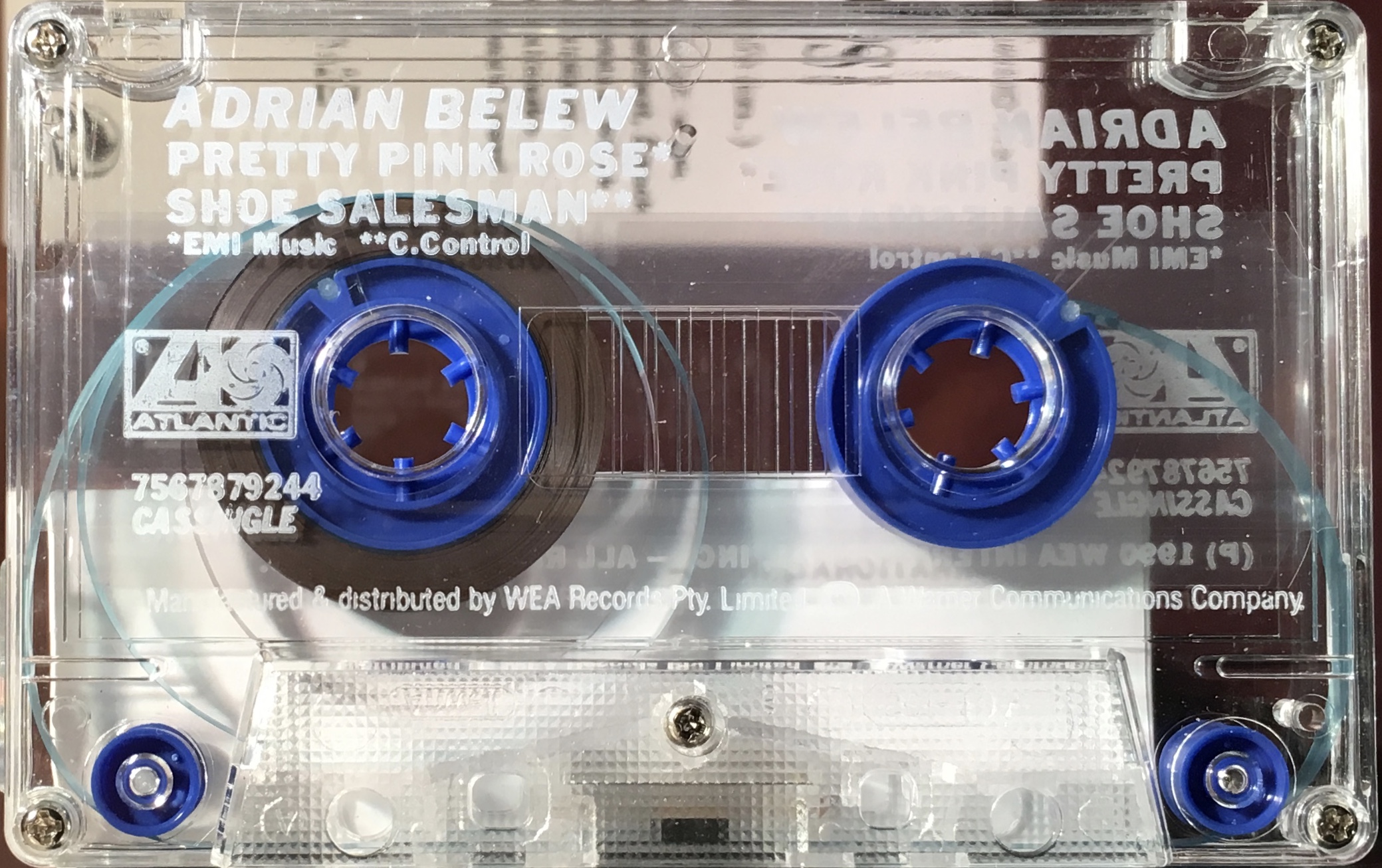 White ink printed directly onto clear shell with blue capstans and pinch rollers and no slip sheet etc. Manufactured and distributed by WEA Records Pty Ltd’ and ‘Atlantic’ logo on shell.