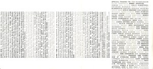 Full panel cover photo with all white panels on treated, thick paper with track list on the rear half-panel. Movie promo on the inner panels; writing and performing credits on inner and inside panels.