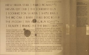 Side 1: New Killer Star; Pablo Picasso; Never Get Old; The Loneliest Guy; Looking For Water; She’ll Drive The Big Car.