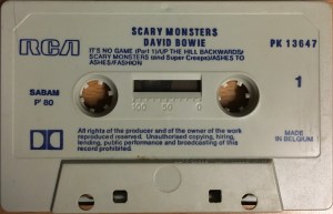 Side 1: It’s No Game (Part 1); Up The Hill Backwards; Scary Monsters (And Super Creeps); Ashes To Ashes; Fashion.