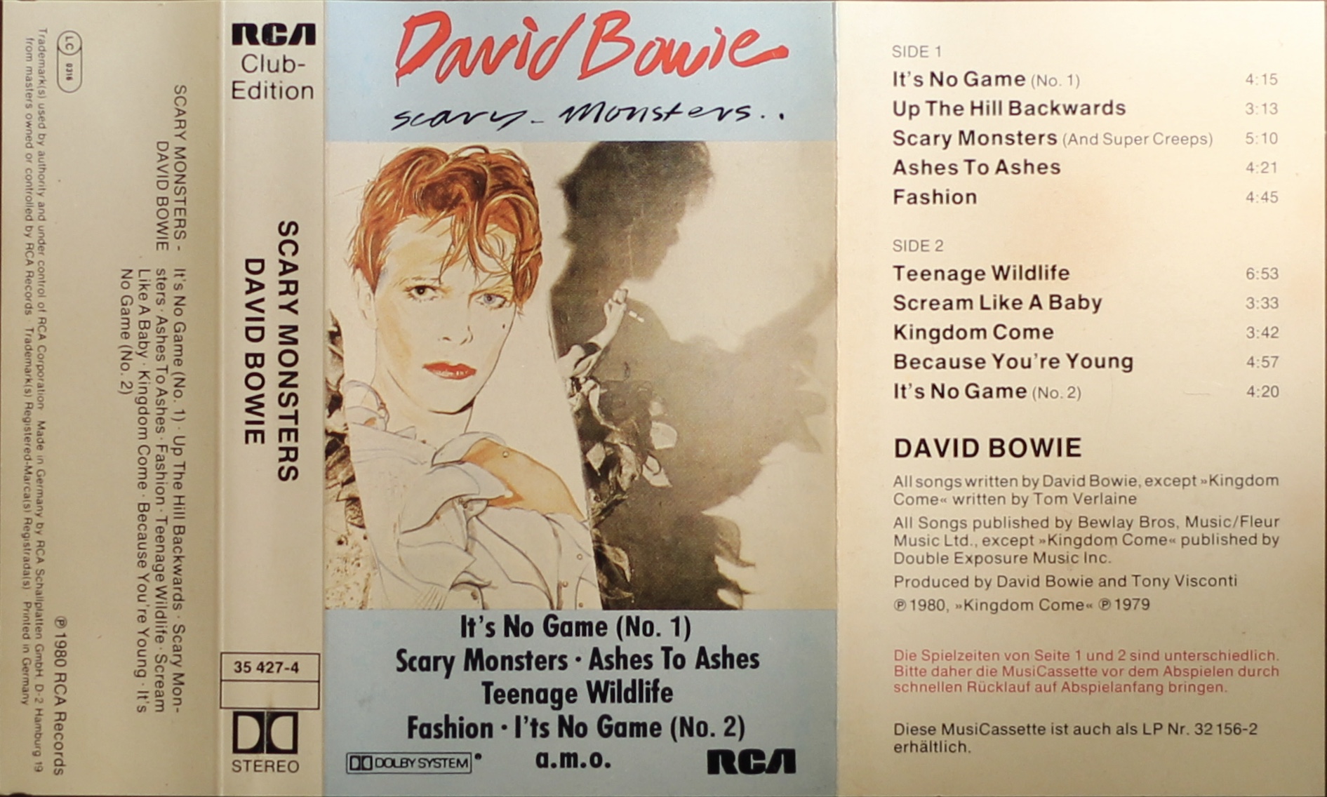 Side 1: It’s No Game (No 1); Up The Hill Backwards; Scary Monsters (And Super Creeps); Ashes To Ashes; Fashion.