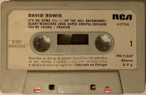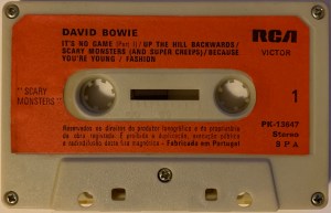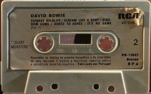 Side 1: It’s No Game (Part 1); Up The Hill Backwards; Scary Monsters (And Super Creeps); Because You’re Young; Fashion.