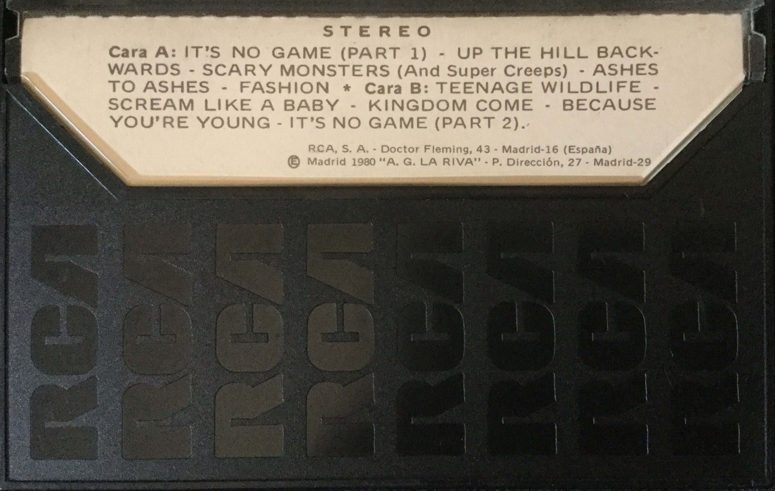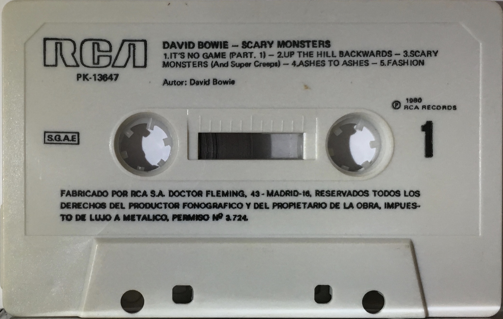 Side 1: It’s No Game (Part 1); Up The Hill Backwards; Scary Monsters (And Super Creeps); Ashes To Ashes; Fashion.