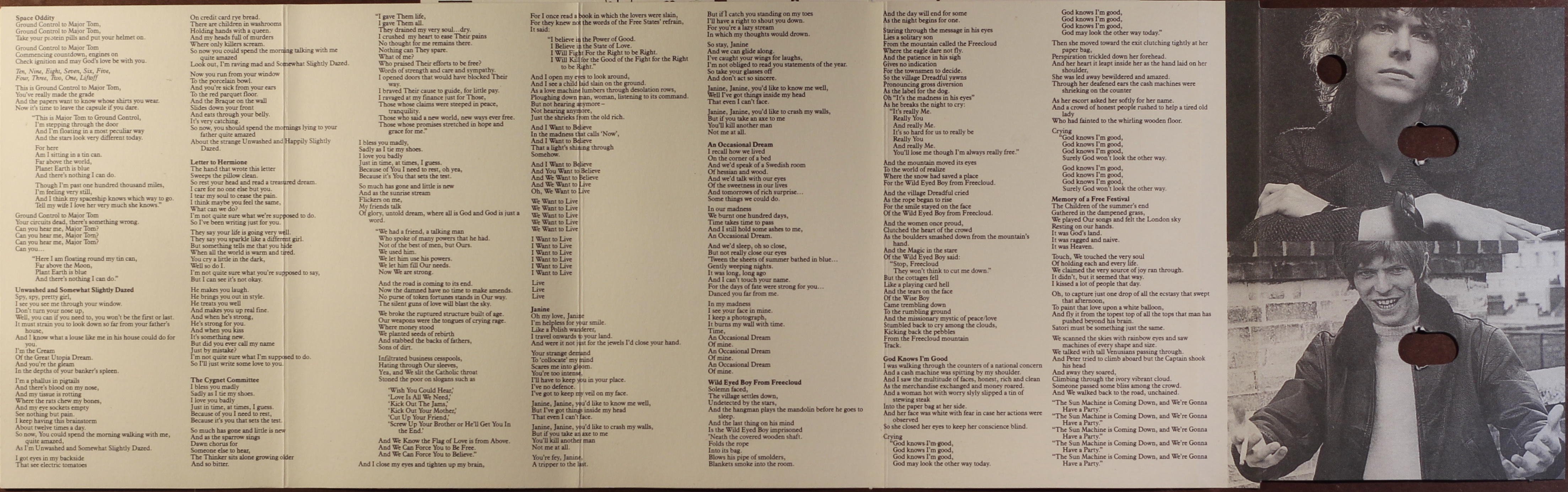 The track sequence has been slightly adjusted from the LP format so that track 1 from side 2 ‘Janine’ has been added as the last track on side 1 to give room for the bonus tracks: ‘Conversation Piece’, Memory Of A Free Festival Part 1 & Memory Of A Free Festival Part 2. ‘Don’t Sit Down’ has been included on side 1.