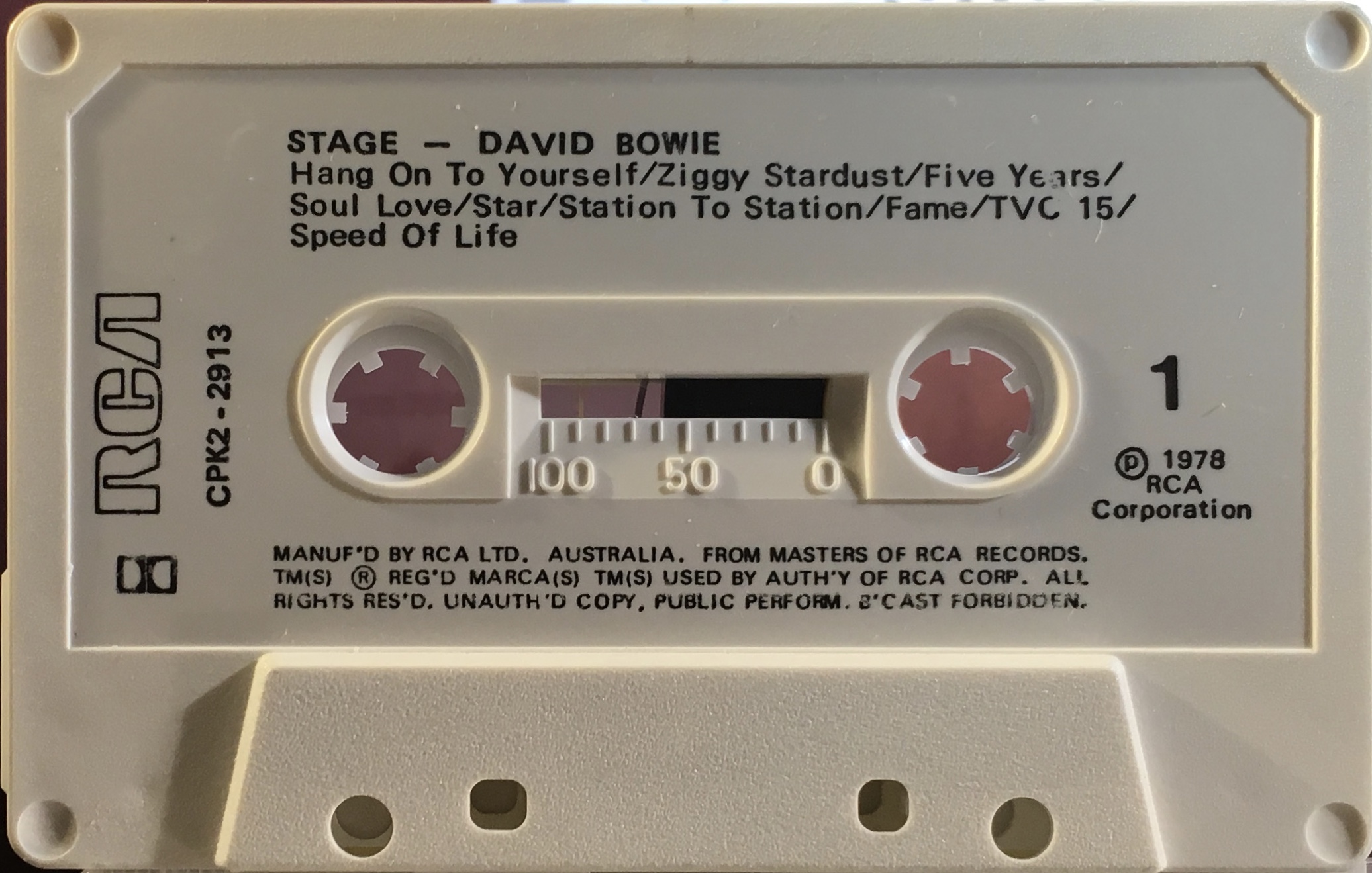 Side 1: Hang On To Yourself; Ziggy Stardust; Five Years; Soul Love; Star; Station To Station; Fame; TVC 15; Speed Of Life.