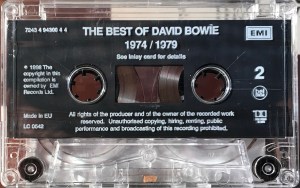 Side 2: TVC 15; 1984; It’s Hard To Be A Saint In The City; Look Back In Anger; The Secret Life Of Arabia; DJ; Beauty And The Beast; Breaking Glass; Boys Keep swinging; Heroes.