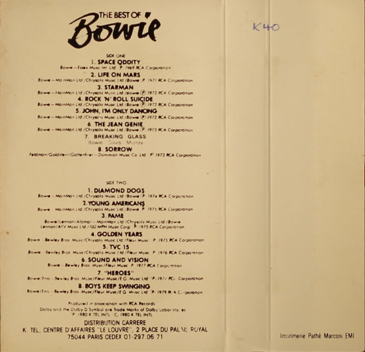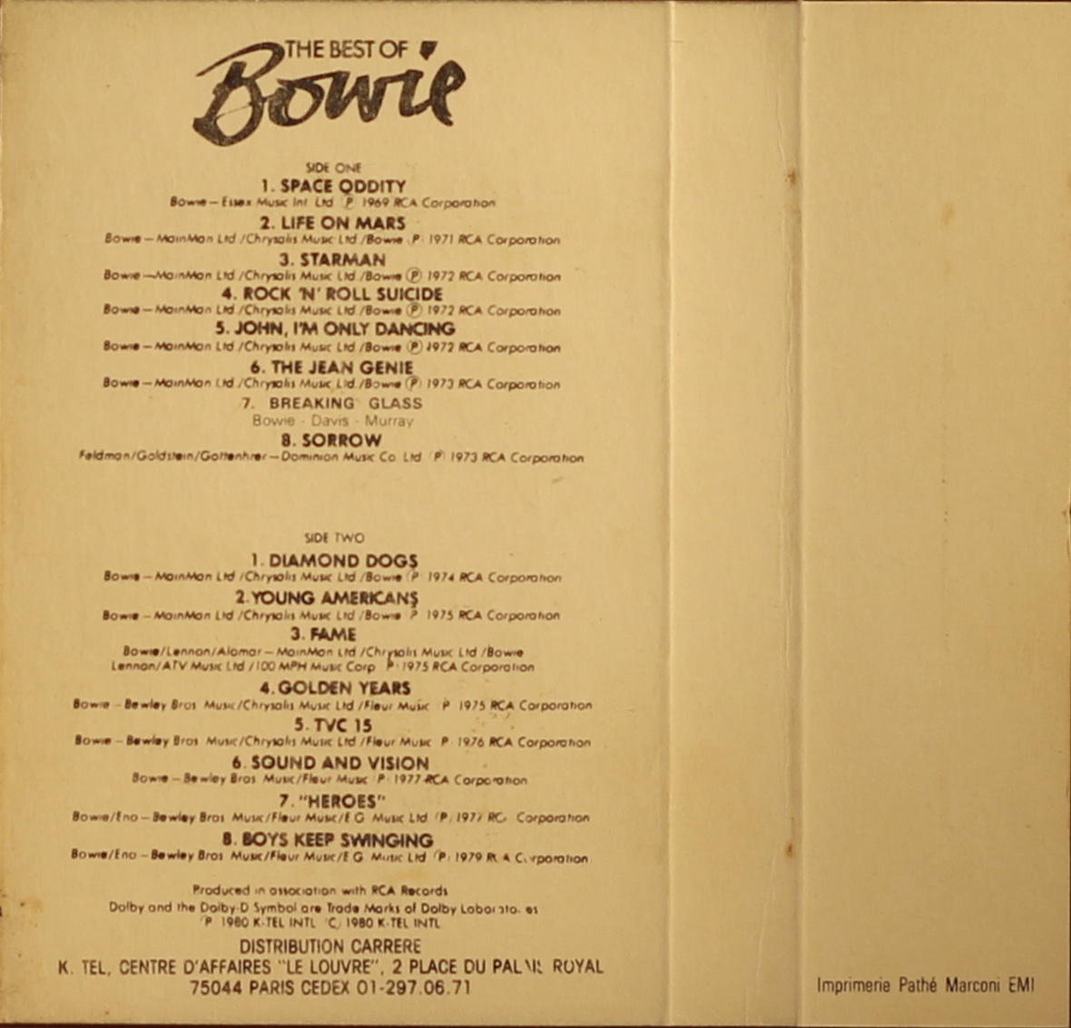 The Best Of Bowie: France; K-tel, BCA 88 801; 1981.