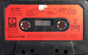 Side 2: Diamond Dogs; Young Americans; Fame; Golden Years; TVC 15; Sound And Vision; “Heroes”; Boys Keep Swinging.