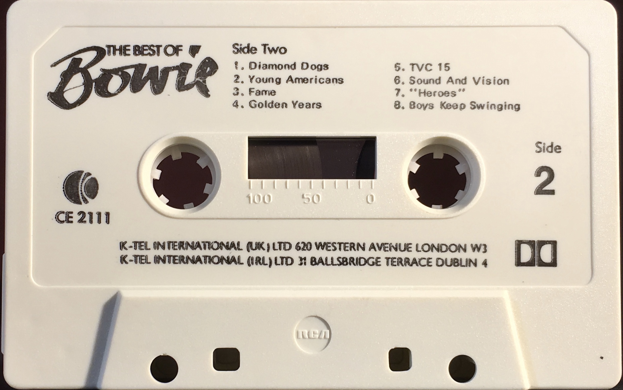 Side 2: Diamond Dogs; Young Americans; Fame; Golden Years; TVC 15; Sound And Vision; “Heroes”; Boys Keep Swinging.