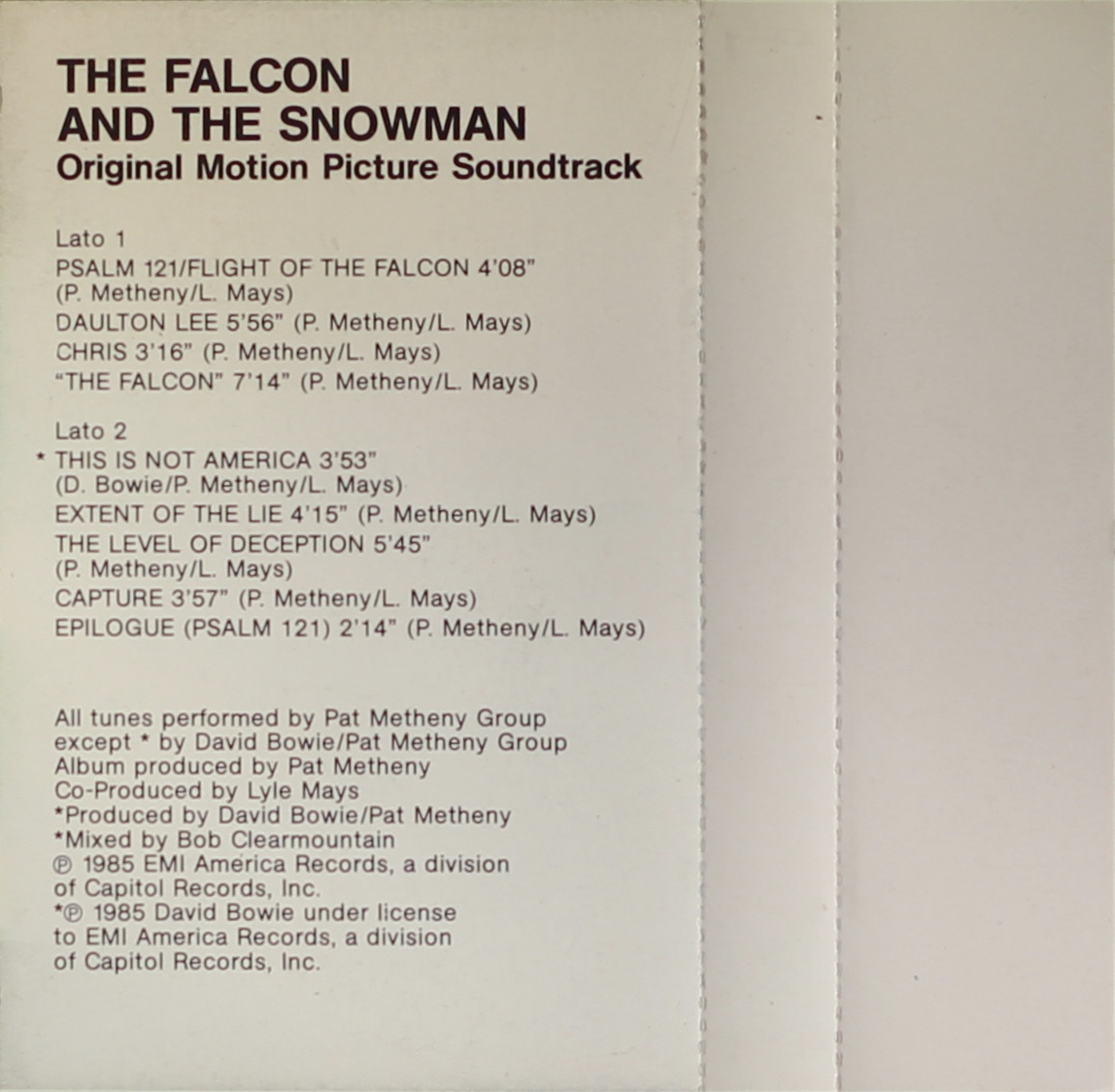 The Falcon And The Snowman: Italy; EMI America, 64 2403054; 1985.