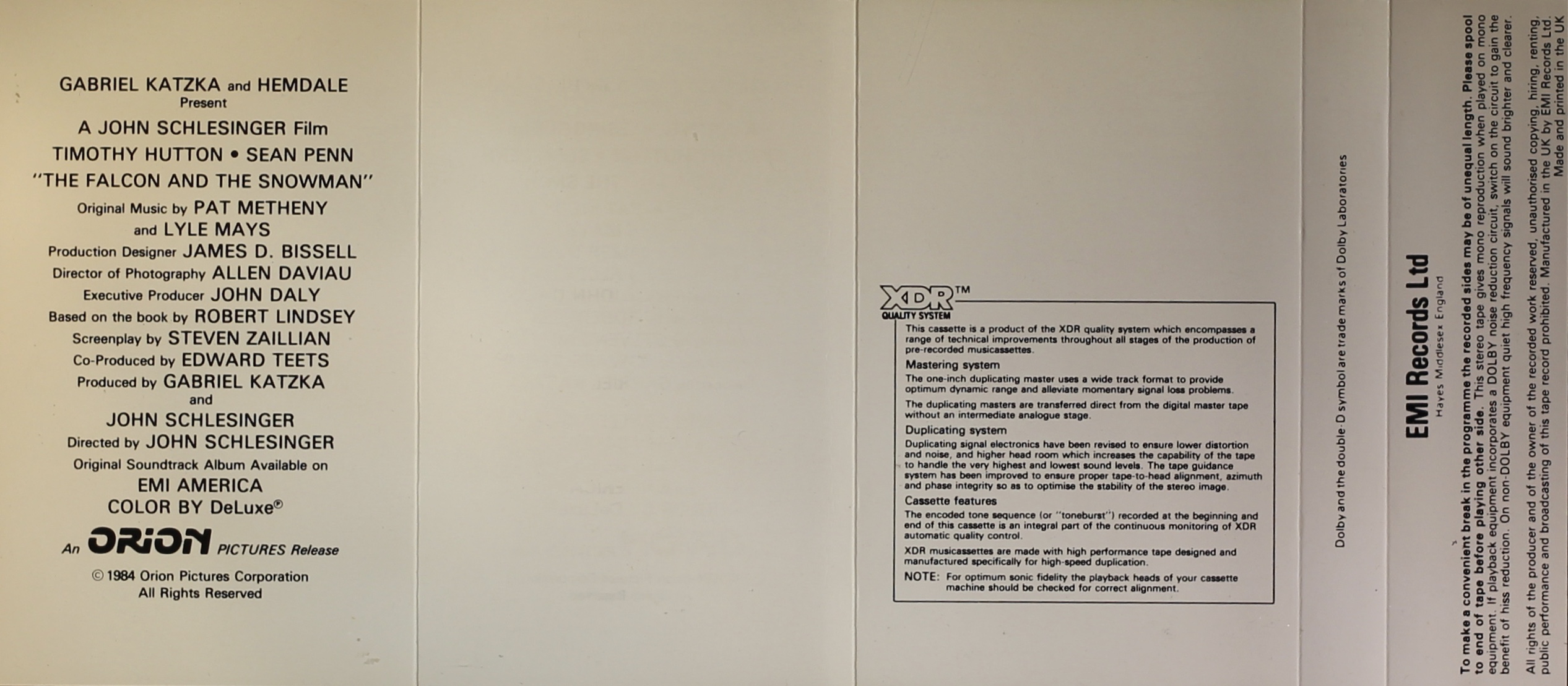 The Falcon And The Snowman: UK; EMI America, TC-FAL 1/ EJ 24 0305 4; 1985.