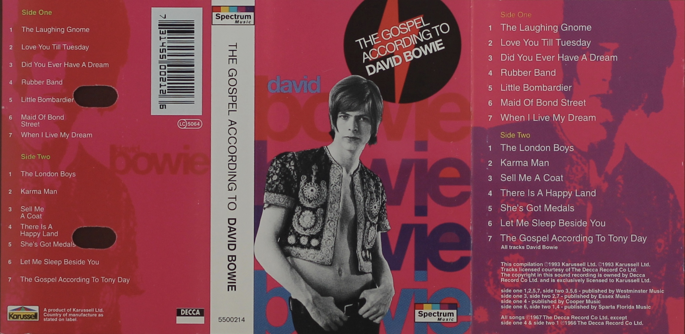 Side 1: The Laughing Gnome; Love You Till Tuesday; Did You Ever Have A Dream; Rubber Band; Little Bombardier; Maid Of Bond Street; When I Live My Dream.