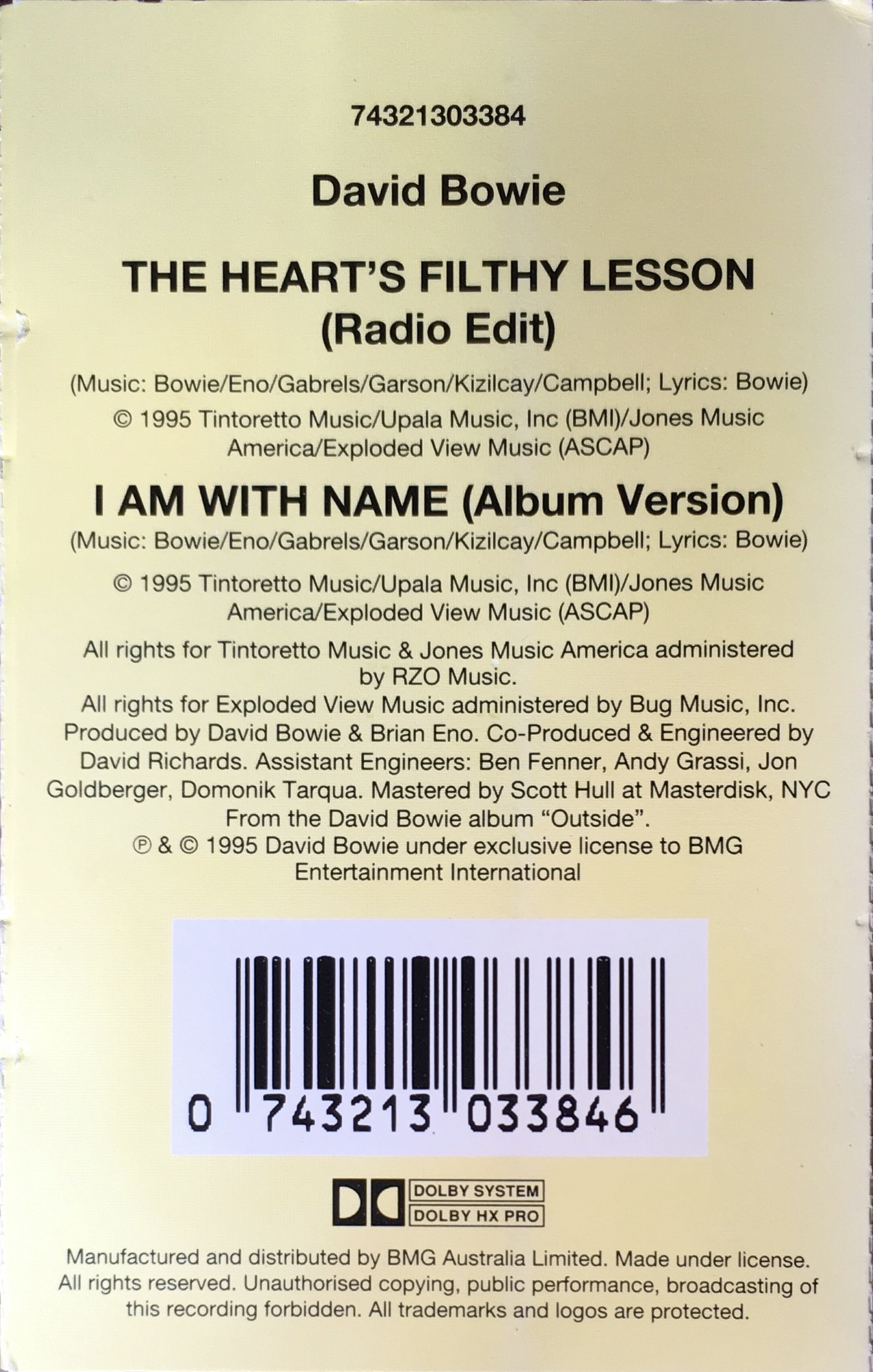 Side 2: The Heart’s Filthy Lesson (radio edit); I Am With Name (album version).