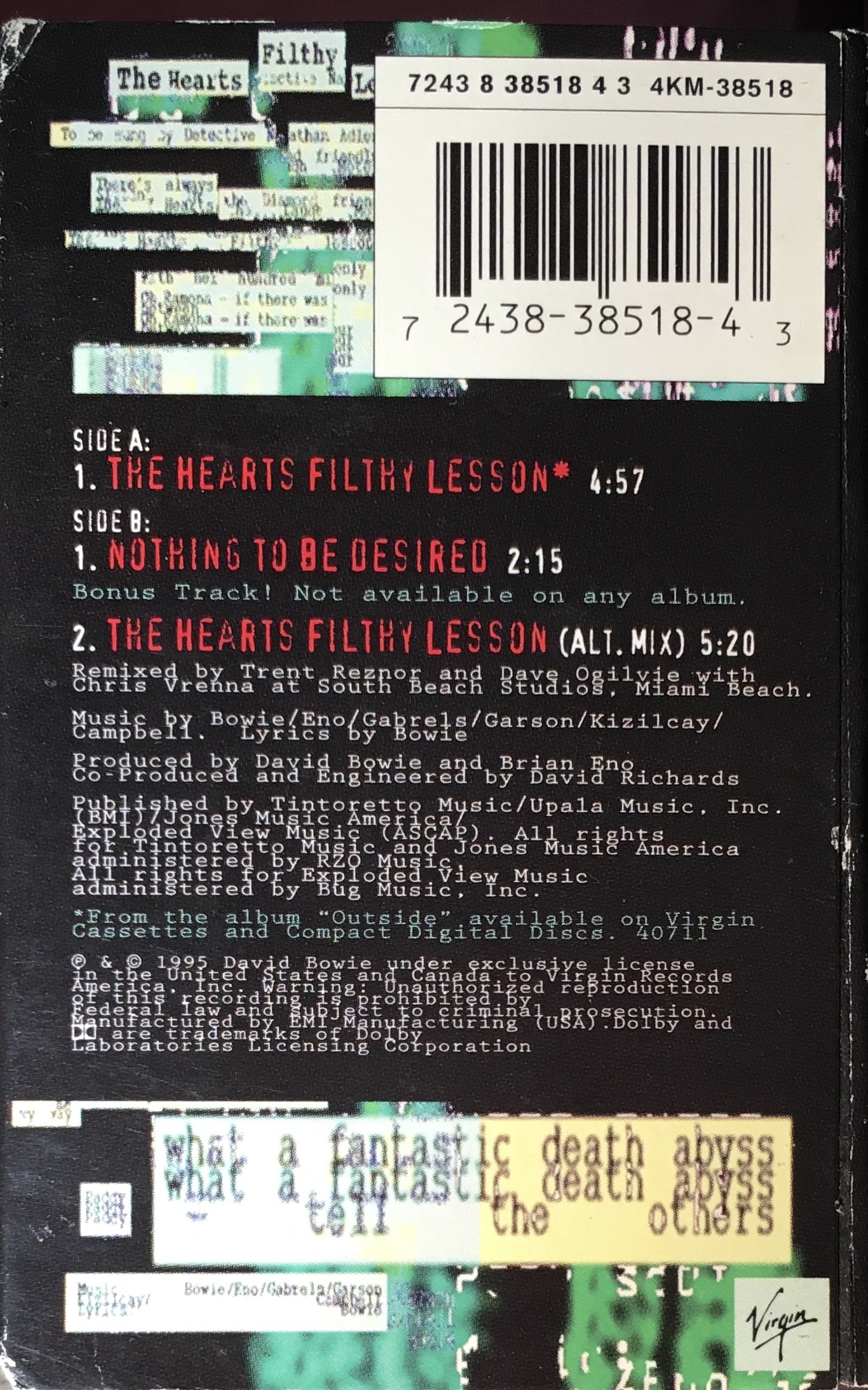 Side 2: Nothing To Be Desired (2:15); The Heart’s Filthy Lesson (alt mix)(5:20).