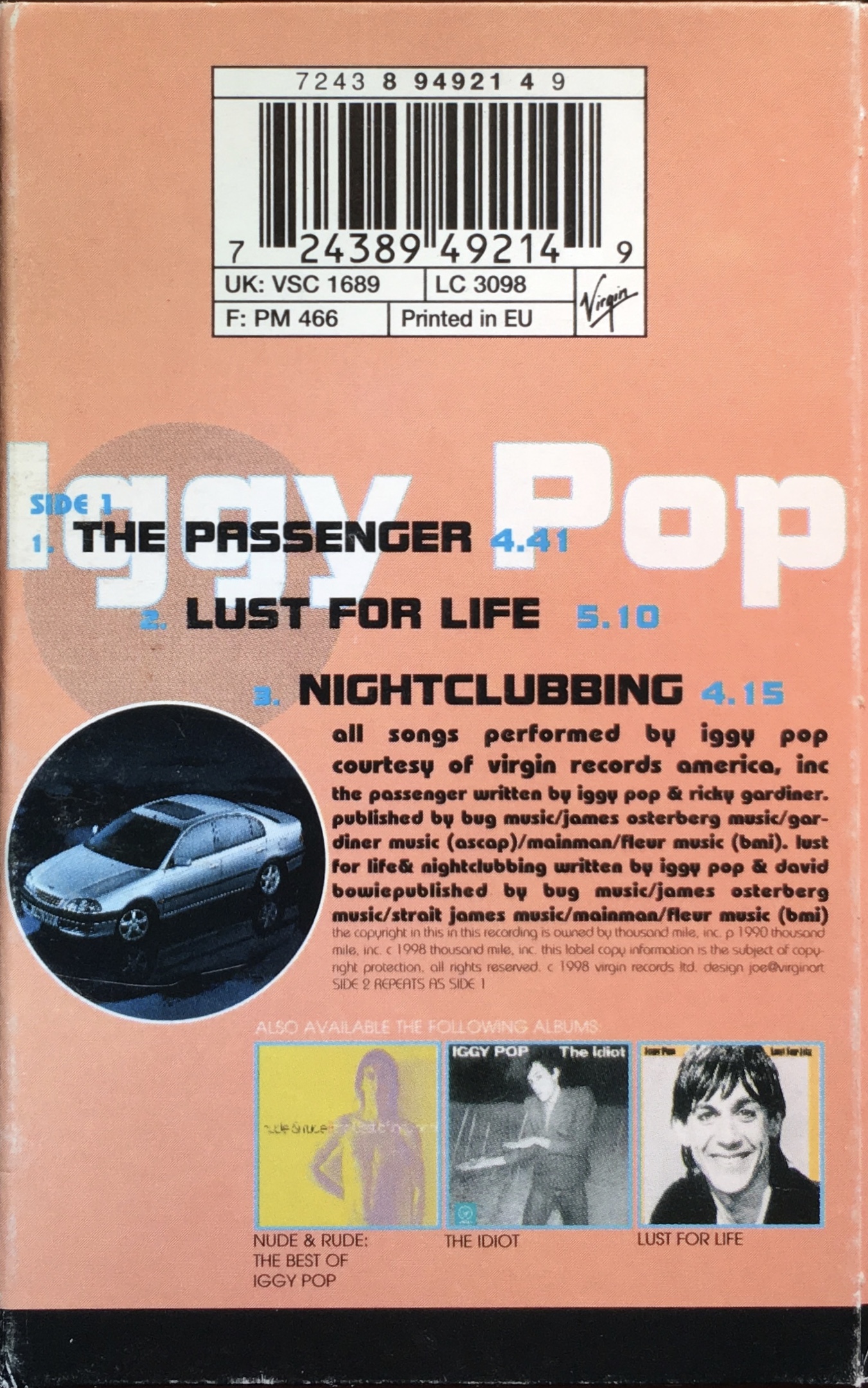 Iggy Pop. ‘The Passenger’: USA; Virgin America, VSC 1689/ 7243 8 94921 4 9.