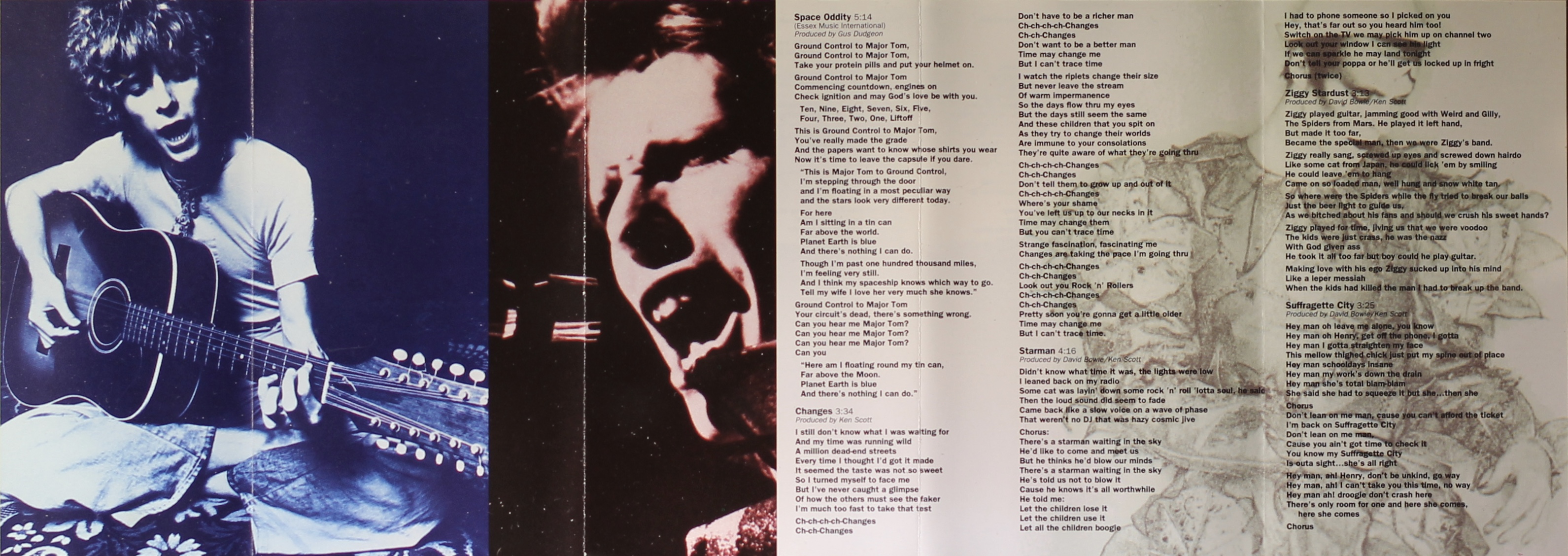 Side 1: Space Oddity; Changes; Starman; Ziggy Stardust; Starman; Ziggy Stardust; Suffragette City; John I’m Only Dancing; The Jean Genie; Drive-in Saturday; Life On Mars?; Sorrow.