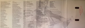 Double album released as two separate cassettes. Eight panel cover on thick, glossy, folded paper. Full panel cover photo; inner picture panels and lyric panels. Inside lyric panels and final photo panel with track list on. Blue spine and rear picture panel with track list on. ‘1’ on spine in circle. The UK cover is used with a red ink stamp in Hebrew on inside of inner panel.