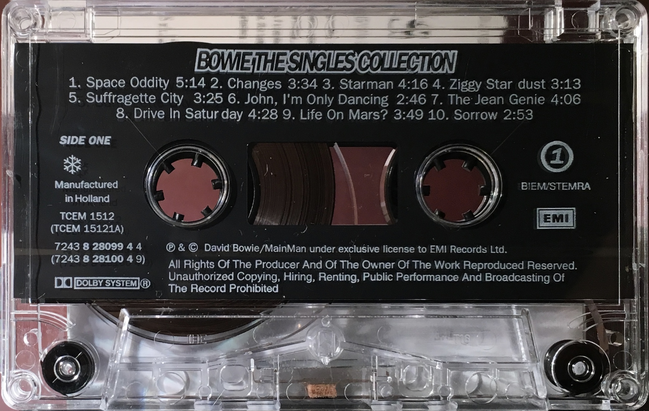 Side 1: Space Oddity; Changes; Starman; Ziggy Stardust; Starman; Ziggy Stardust; Suffragette City; John I’m Only Dancing; The Jean Genie; Drive-in Saturday; Life On Mars?; Sorrow.