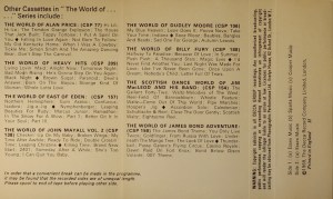 Circular cover photograph bordered by black and white circles; yellow spine and rear panel with white inner panel on glossy paper. Track list on rear and inner panels. The rear of the cover has details of other releases in the CSP range.