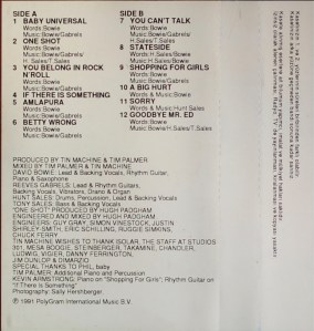 Side 1: Baby Universal; One Shot; You Belong In Rock ‘N’ Roll; If There Is Something; Amlapura; Betty Wrong.