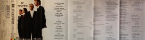 All white panel concertina cover on glossy paper. Cover photo and track list over first two panels with lyrics reproduced over the final three panels on either side of the cover. Track list also on rear panel. Dolby information on rear panel but the cassette shell states ‘Dolby HX Pro’. The tracks ‘Run’ and ‘Sacrifice Yourself’ are added to the running order of Side 2 as per the CD.