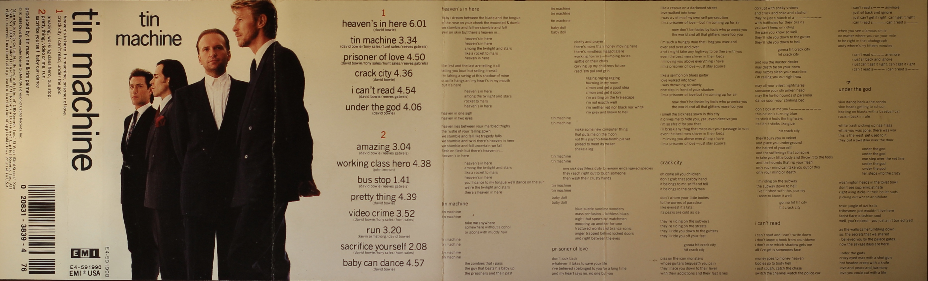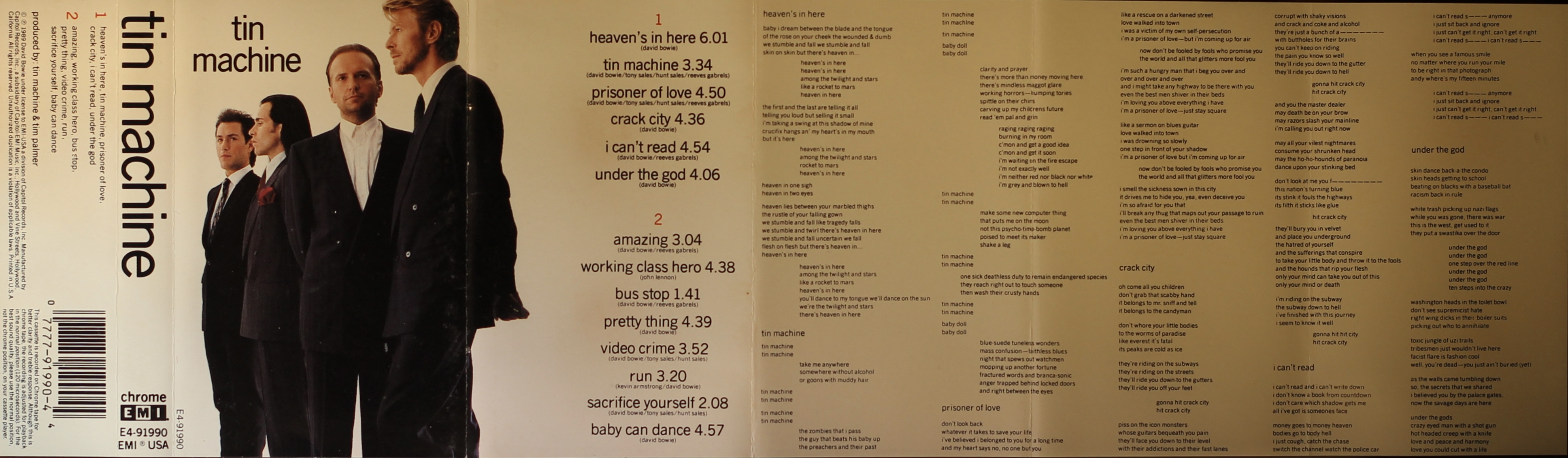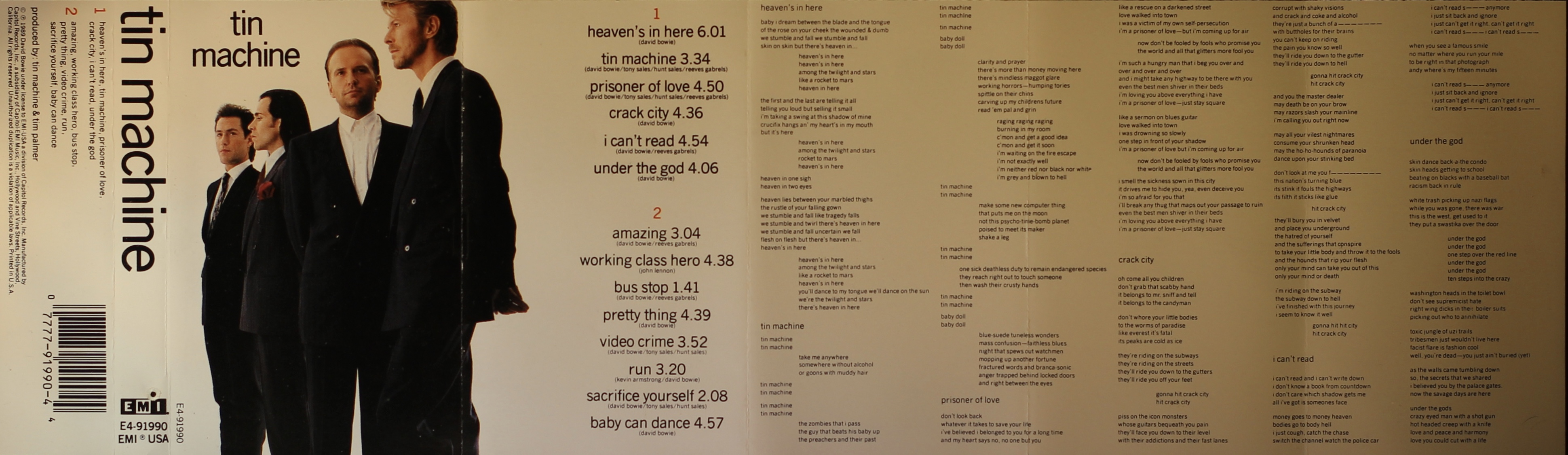 Side 1: Heaven’s In Here; Tin Machine; Prisoner Of Love; Crack City; I Can’t Read; Under The God.