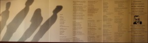 All white panel concertina cover on thick, glossy paper. Cover photo and track list over first two panels with lyrics reproduced over the final three panels on either side of the cover. Track list also on rear panel. The tracks ‘Run’ and ‘Sacrifice Yourself’ are added to the running order of Side 2 as per the CD. No chrome above EMI on spine and no information below barcode on rear panel.