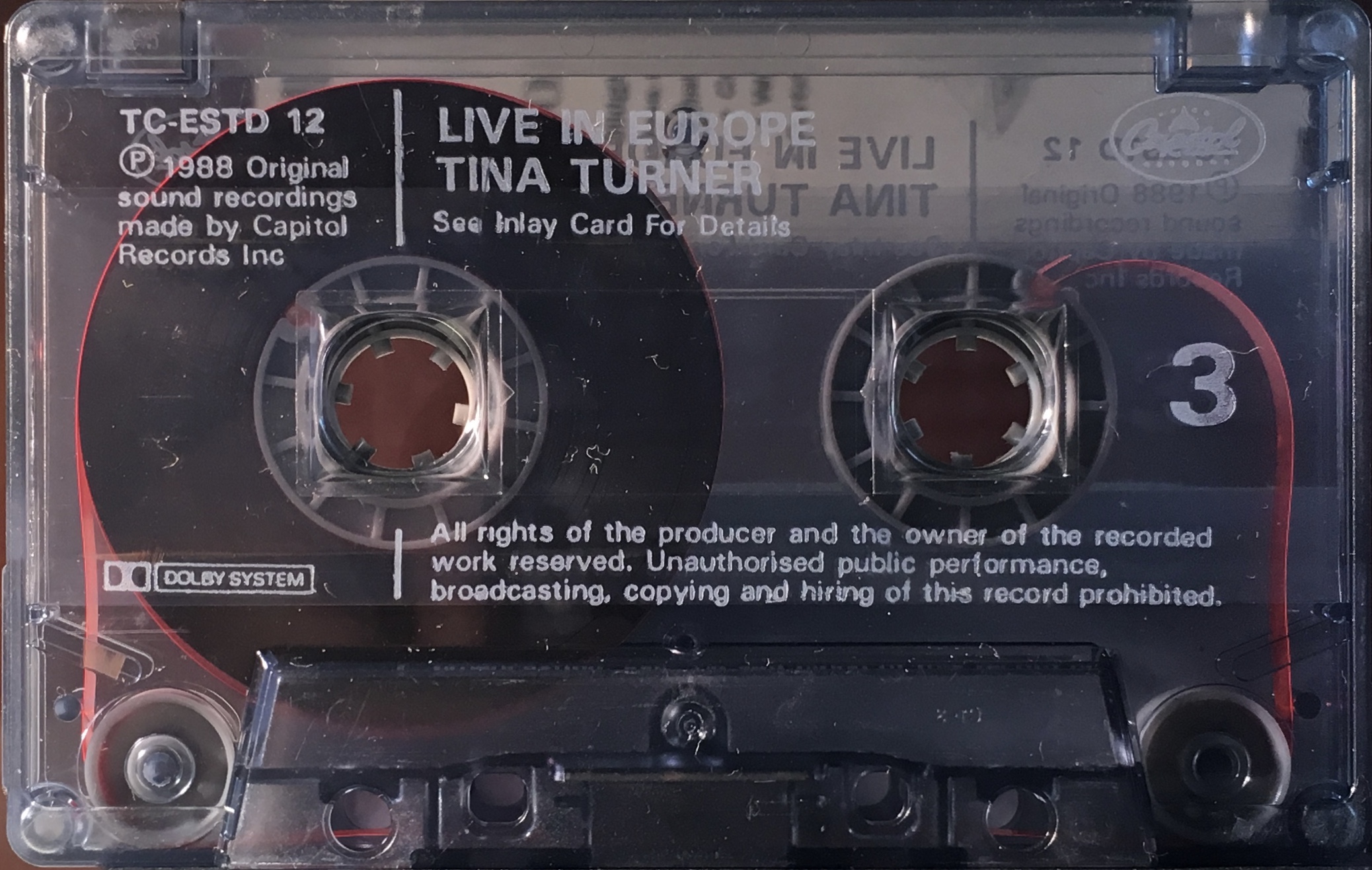 Tina Turner. ‘Tina Live In Europe’: UK; Capitol Records, TC-ESTD 12; 1998.