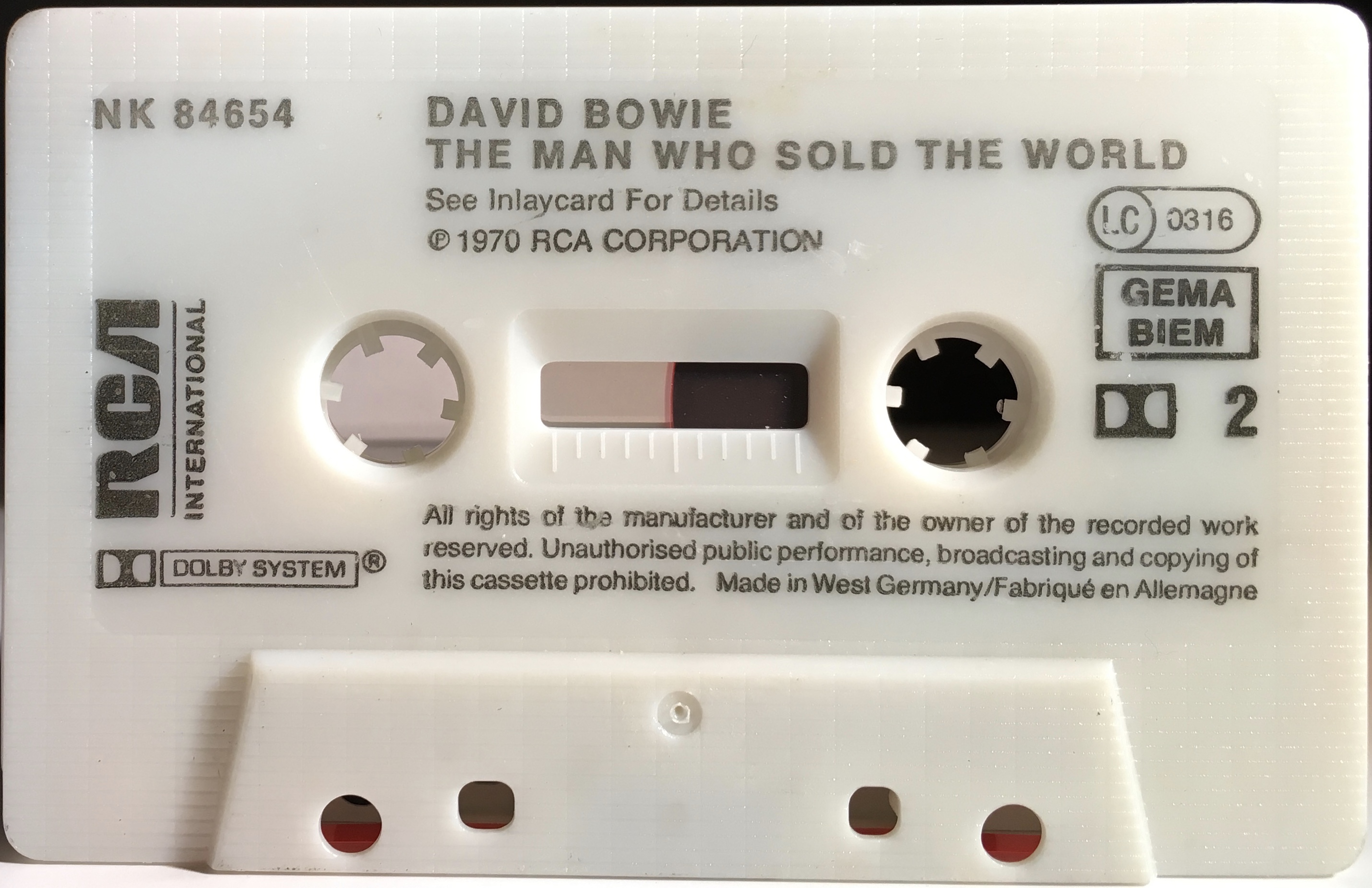 The re-issue coincides roughly with the RCA International re-issue LP’s. Although made in West Germany they were intended for Europe wide distribution, hence the different languages used on the cassette and price codes on the cover, the rear of the cover is blank. Black ink printed directly onto white shell. There are variants for the cassette shell.