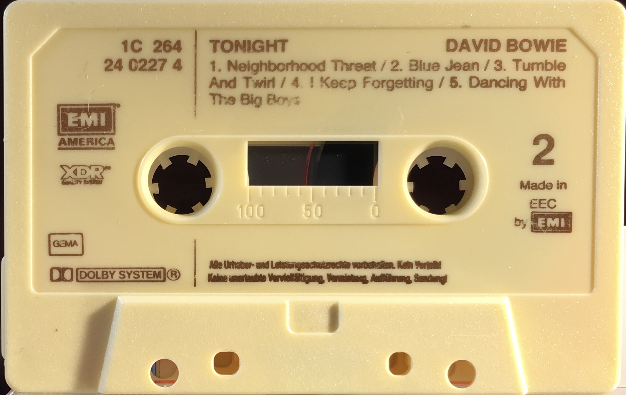 The catalogue number begins 1C, this would denote that this is a German EMI issue however the shell states ‘Made In The EEC’; the shell also shows the mechanical rights society – ‘GEMA’, (Germany) only. The rights information is in German on one side of the shell and English on the other; this tape has been classified as for EU distribution.