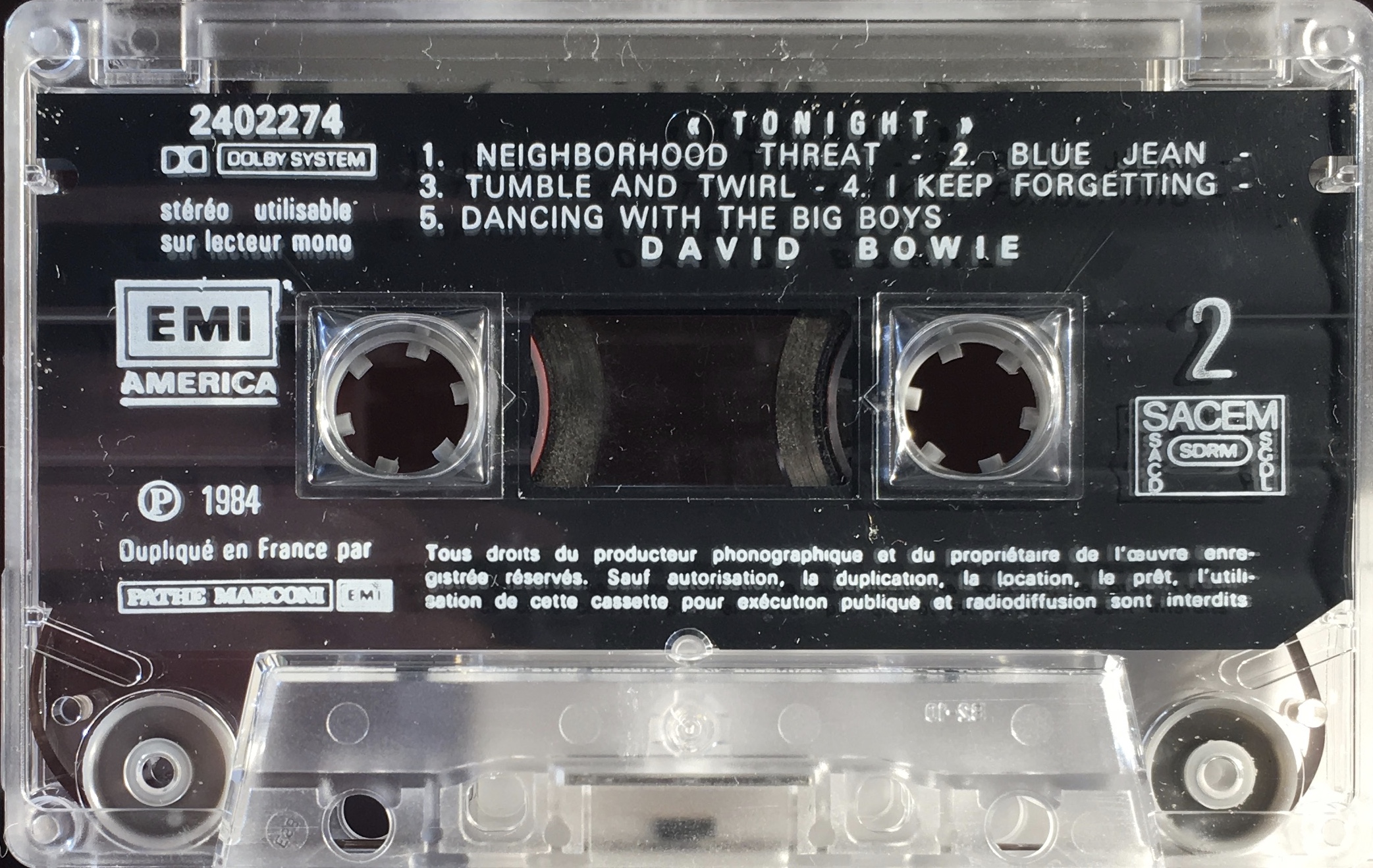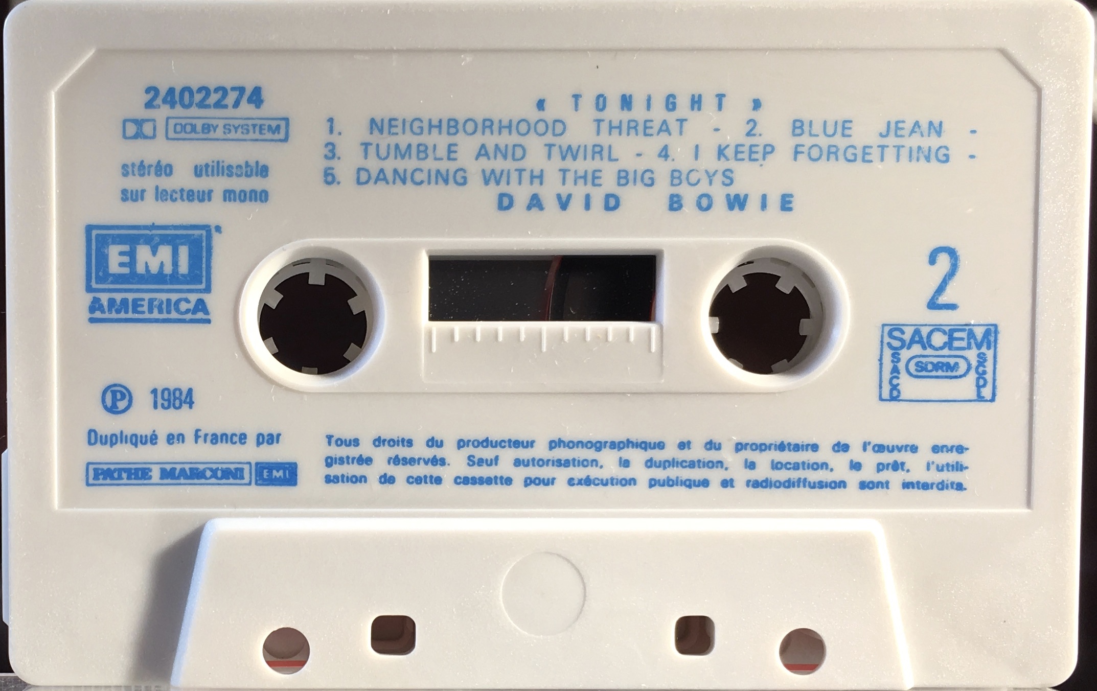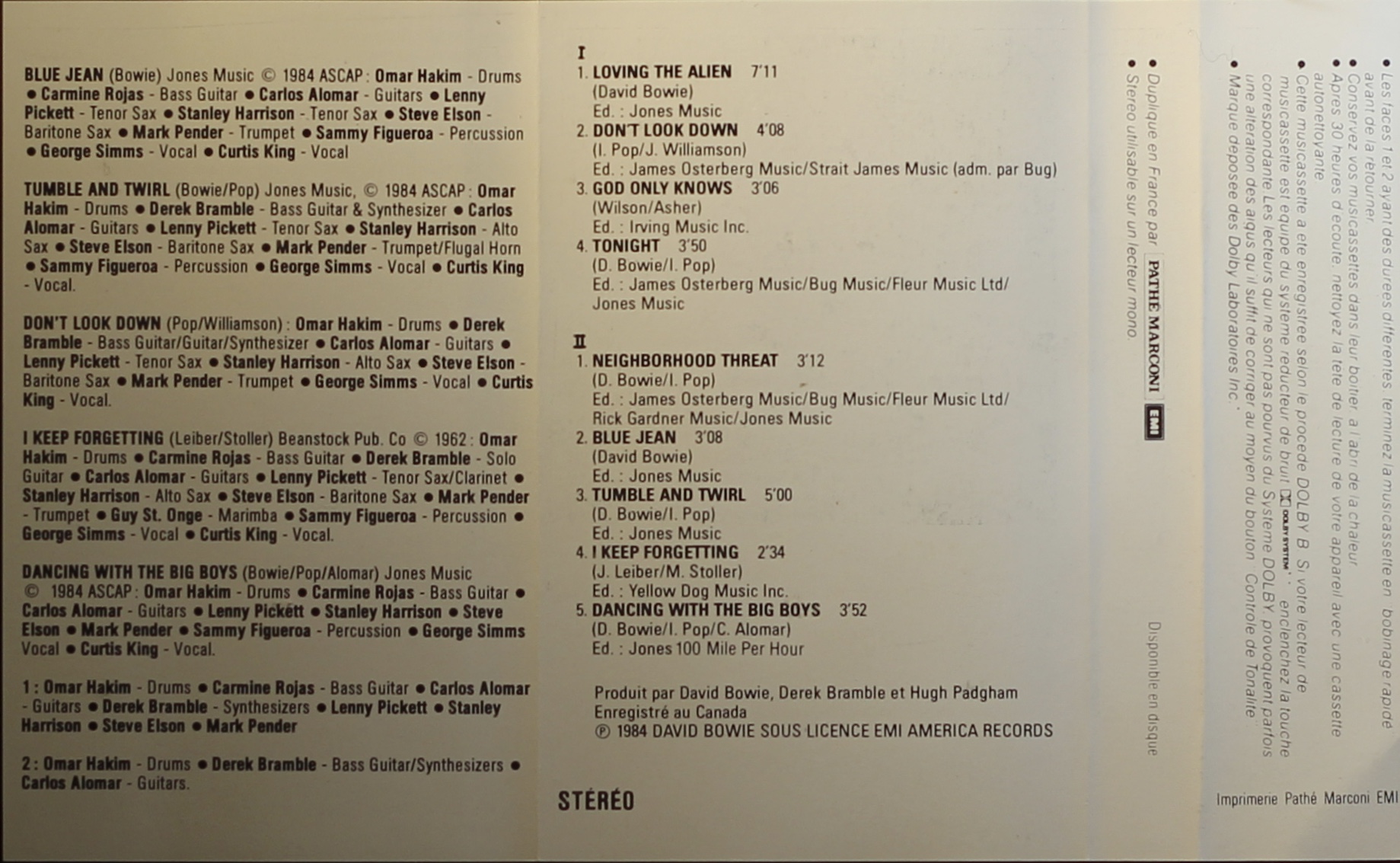 Side 1: Modern Love; China Girl; Let’s Dance; Without You.