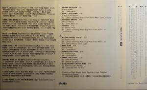 Cover is made from folded, treated thick paper. White border around cover art and white footer with track list on it. White rear and inner panels and spine. The inner panel and rear of the cover has detailed track list and production information on it; track list is also on the rear panel.